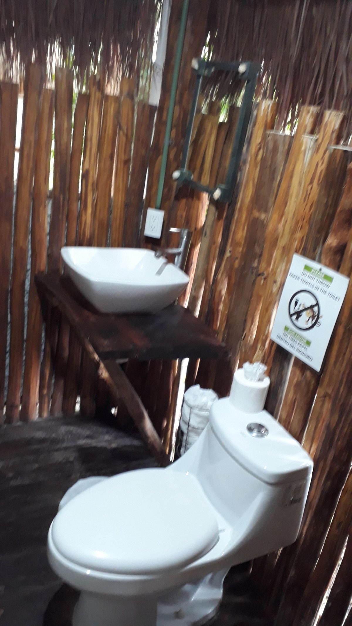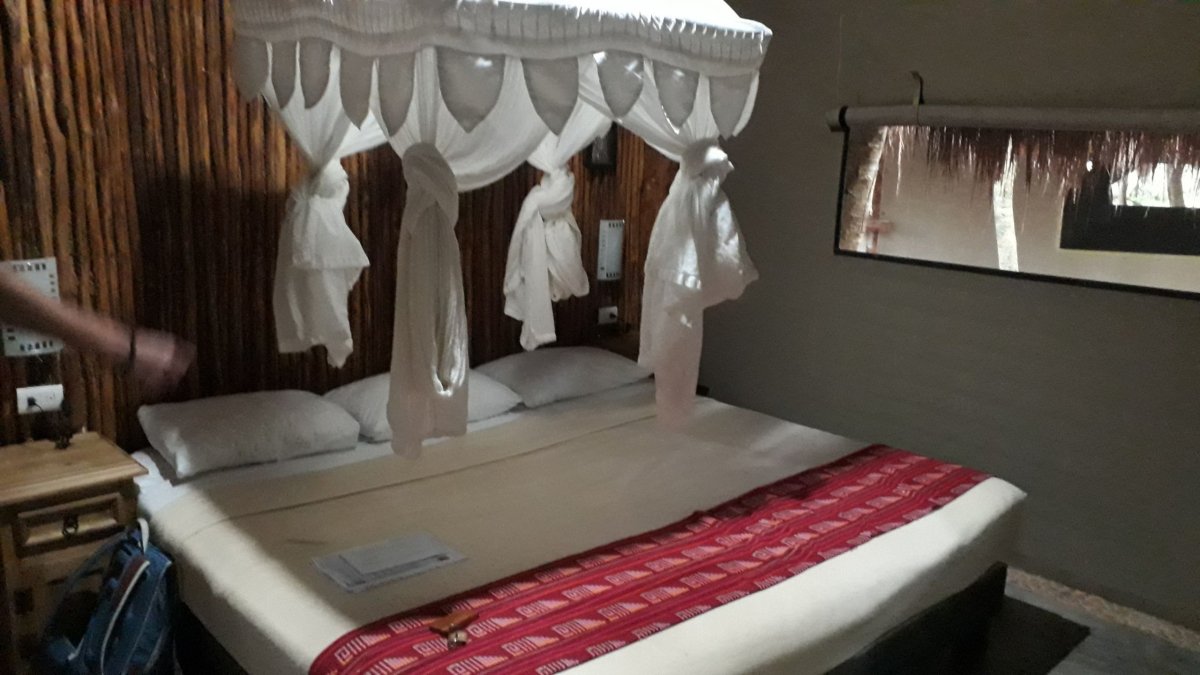 Najít ubytování není vůbec sranda a našemu Chevymu se 10 minutový rallye džunglí taky moc nezdálo. Ale nepíchli jsme! Po příjezdu nám hned dochází, že ubytování bude ještě o trochu větší adventure než jsme čekali. Majitelé jsou milí "eko hipíci" , kteří nás po příjezdu vítají spolu s desetičlennou psí smečkou. Sprcha jen se studenou vodou a záchod formou kompostu smrdící tak, že si jeho návštěvu sakra rozmyslíte. Domeček na stromě je podlaha stlučená z prken, na tom matrace a střecha z pár palmových listů. Asi to bude sranda :).