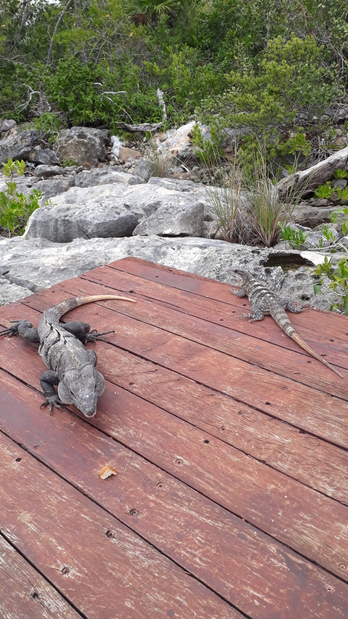 Po příjezdu si platíme základní tour džunglí s průvodcem a ptáme se, jestli se můžeme nejdřív vykoupat v laguně. Průvodce kýve s tím, že se u laguny sejdeme za hodinu. Když dojdeme k laguně, děláme si srandičky, že to vypadá přesně jako ty jezera z filmů, kde plavou krokodýli. Honza vznáší přesvědčivý argument, že to by nás přece nenechali se v laguně koupat. Po koupačce se vyhříváme na molu a čekáme na našeho guida.