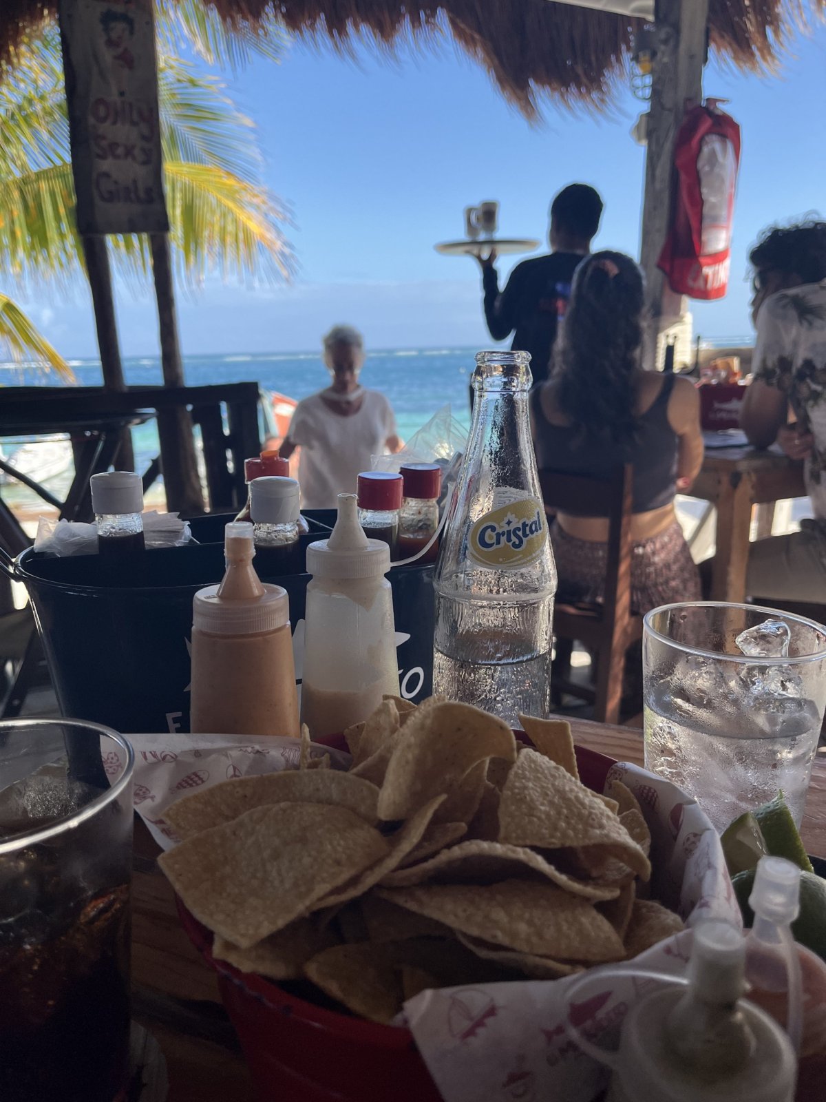 Cesta do Chiquily je cca 3,5 h a jak se začíná kolíbat autobus začíná mi být zle, dávám si kinedryl přece jen nás čeká ještě plavba lodí. Po příjezdu do Chiquily je zde několik stánků na Holbox express. kupujeme lístky a jdeme do přístavu, stíháme i trajekt, kufr máme -> vyplouváme. Cesta je poklidná, nic s námi neháže, vlny nejsou, cesta trvá cca 25 minut. Ubytko máme v centru, takže docházíme pěšky, ostrov je malý. Stíháme i západ slunce, krásná pláž bez mořské trávy, krásný písek -> značka ideál. Na večeři poprvé ochutnáváme jejich pizzu :-D a jako fakt dobrá, dokonce lepší než u nás (italská je ovšem numero uno). Tyto dny se flákáme na pláži, našli jsme si plážový bar, kde se platilo pouze za konzumaci a k tomu jsme měli lehátka, slunečník a užívali si. Další den východ slunce a západ slunce na pláži, corona, dobré jídlo. Je to ostrov, tak je to dražší, ale je tu krásně.
