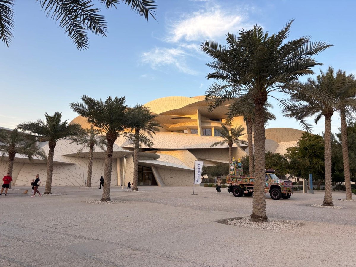Po pár minutách přijel mikrobus, který nás pobral všechny najednou i s příručáky a jelo se. První dojem - naprostá čistota. Všeho a všude. Plus to, že je na každém kroku vidět, že Katar je nejbohatší zemí světa. Architektura hodně zajímavá - jako třeba Národní muzeum, které připomíná tak trochu nějaké trsy hub... Právě u Národního muzea byla první zastávka. Než jsme se stihli domluvit, jestli se nám chce ztrácet čas prohlídkou expozic nebo jestli radši stihneme něco dalšího, rozhodli Katařani za nás. Přestupovat! Dvě Toyoty LandCruiser s typickými muži pouště ("ručník" kolem hlavy a bílý hábit až ke kotníkům) nás měly dovézt na jízdu dunami. Vyrazili jsme. Po deseti minutách jsme začali netrpělivě vyhlžet, kde jako teda ty duny jsou. Nic. Zato jsme viděli několik stadiónů, postavených pro fotbalové MS 2022, u jednoho (s názvem 974) jsme se i zastavili a trochu to omrkli. A co že se na těch stadiónech za desítky miliard korun teď děje, ptám se hábiťana, který se představil zhruba jako Ašik. No a Ašik suše (on toho vůbec moc nenakecal), že Local league. A že jako když to je nějakej fotbal a není to Horse racing, což je v Kataru národní sport, tak že vlastně nuda. Za miliardy. Prostě Katar.