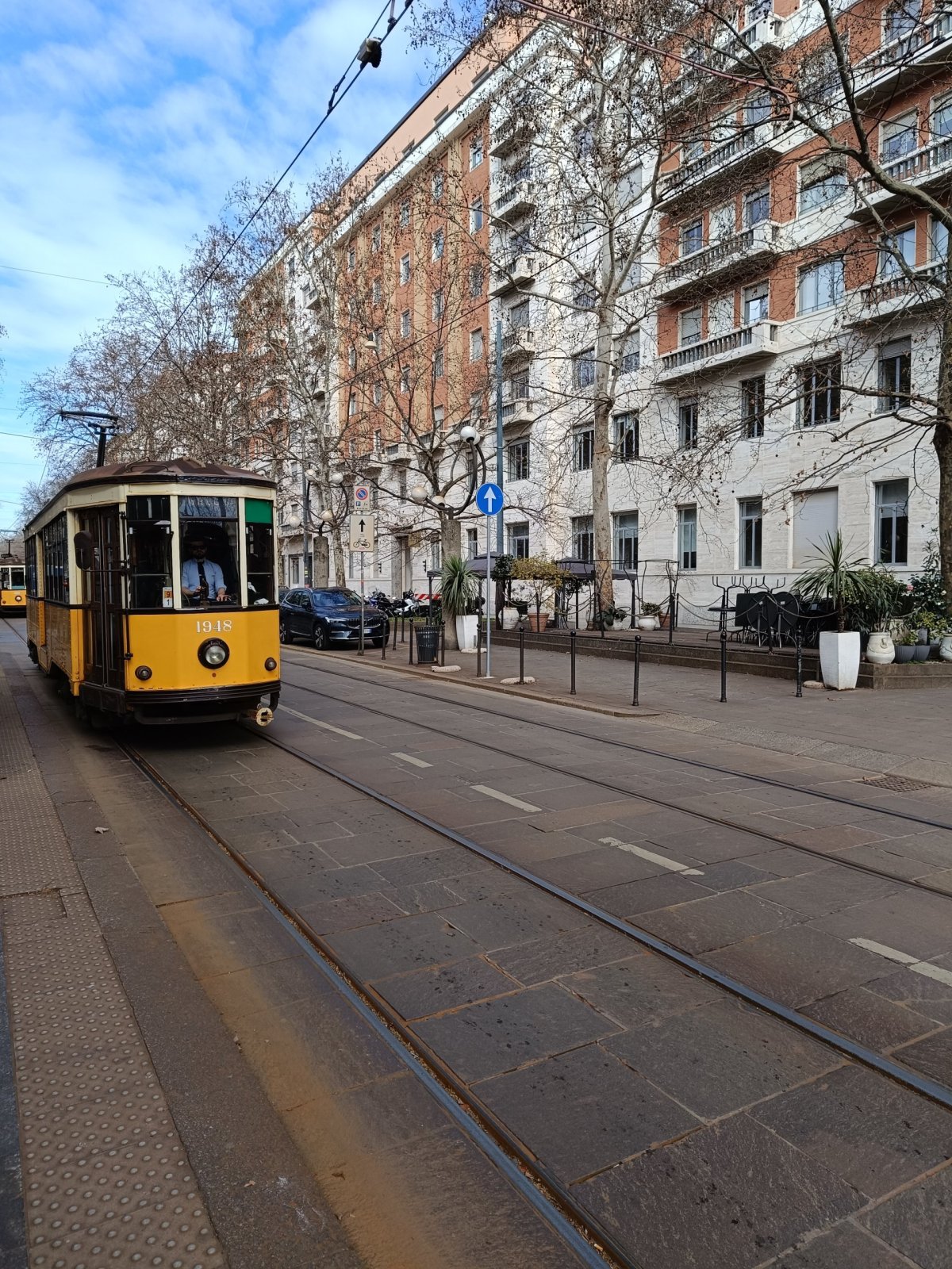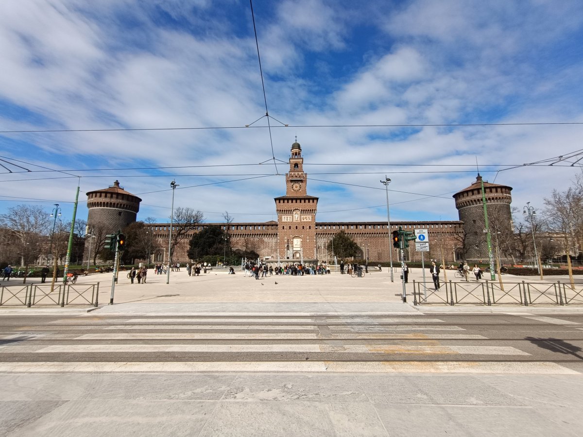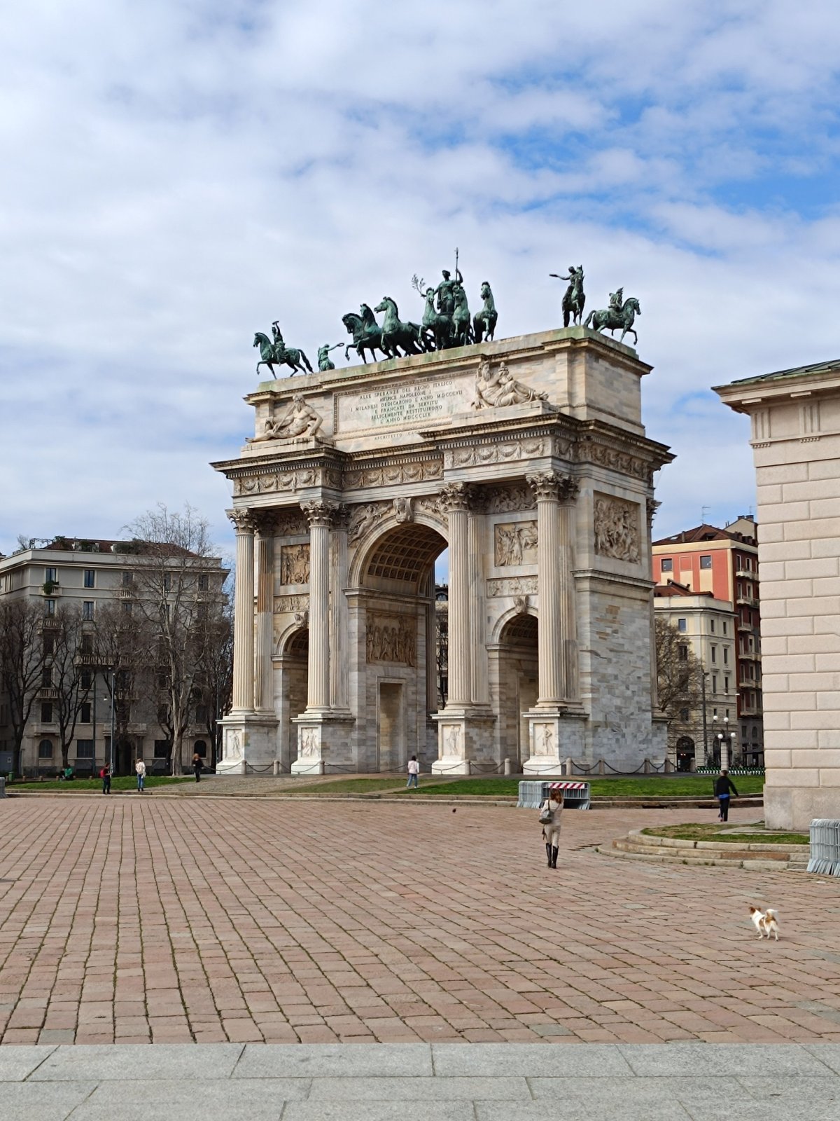 Potom jsme se šli procházkou na hrad Castello, tam si dali zmrzlinu a pokračovali parkem k vítěznému oblouku Arco della Pace. Tím, že už v březnu bylo nádherné počasí, park byl už plný lidí, kteří si házeli frisbee nebo jen tak poléhávali na trávě. Od oblouku jsme se svezli ikonickou tramvají zpět k Duomu, a za katedrálou si dali oběd- pizzu a těstoviny. Itálii miluju už samozřejmě kvůli tomu jídlu, co si zde dáte, je prostě výborný 😇