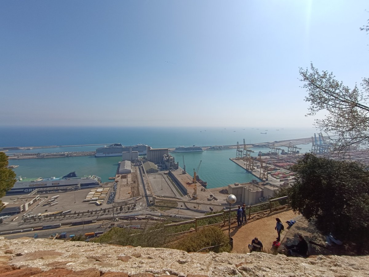 Nahoře je stará vojenská pevnost Castell de Montjuïc, která se dá celá krásně obejít. Nahoře jsou lavičky, s krásným výhledem na celý přístav, moře a okolí. Tam jsme poseděli skoro hodinu, přístav nás fascinoval. Pak šli ještě na druhou stranu, kde je výhled na celé město a lanovku. Poté se svezli dvě zastávky busem ke stadionu, který byl postavený v roce 1999 k LOH. A busem pokračovali zase dolů na náměstí. Na náměstí se nachází velké obchodní centrum - využili jsme zdarma toalety a koupili pití. Pak se ještě prošli na pláž k přístavu, poseděli a přes tržnici zpět na hotel a večer nás čekal odlet.