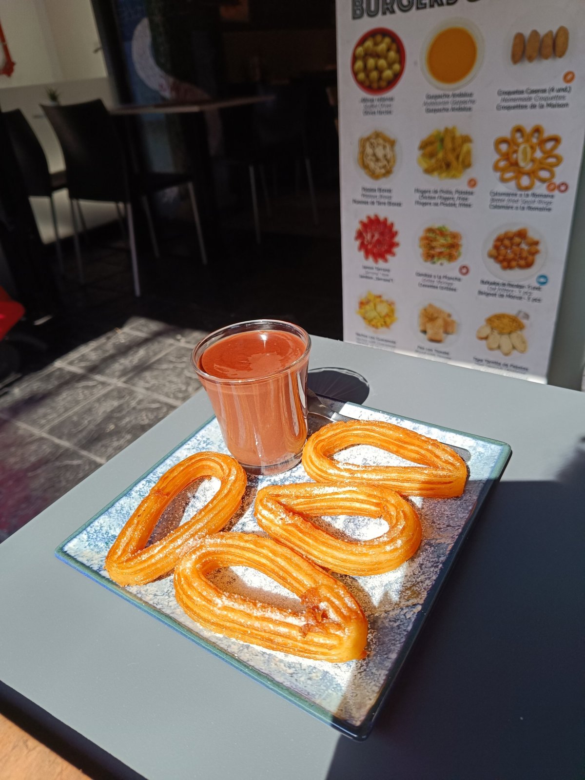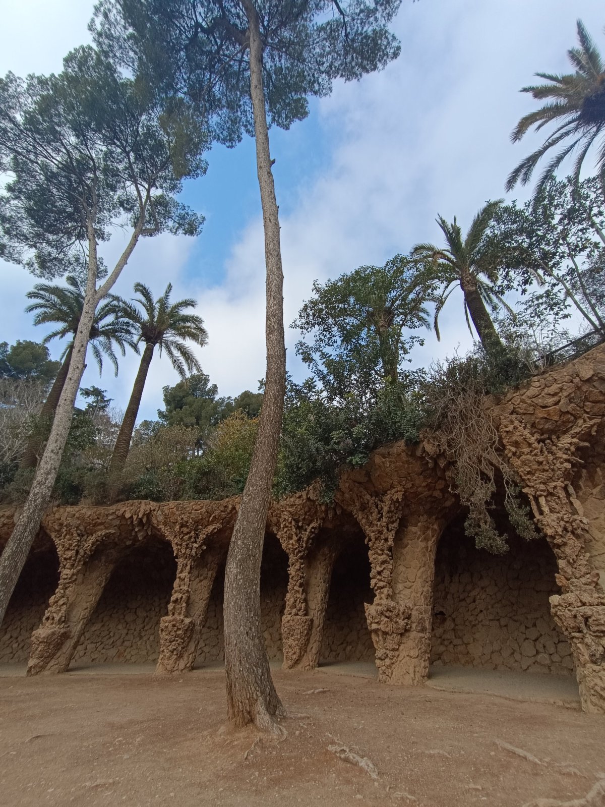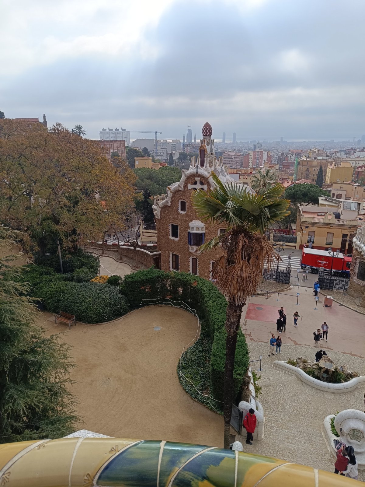 Další den nás čekala návštěva parku Güell, který je plný architektonických prvků Gaudího. Lístky jsem kupovala online předem na přesný čas a den. Doprava sem je trošku komplikovanější, jeli jsme autobusem, a pak jsme ještě chvíli bloudili. Snažili jsme se opět dorazit brzy ráno, aby zde nebylo ještě tolik lidí. Park kouzelný, prostě ta Gaudího architektura je boží 🙂. Krásné výhledy, dole pak malý obchůdek s občerstvením ( drahý teda jak čert) a záchody. Zpět jsme šli pěšky, z kopce dolů na nějakou hlavní silnici, cestou si dali typický dezert Churos a pokračovali metrem do centra k náměstí Placa D'Espanya. Tam nasedli do autobusu směr Montjuïc. Nejdřív jsem myslela, že bychom mohli jet lanovkou jako zážitek, ale je poměrně drahá, a naše Hola card platila i na autobus nahoru tak nebylo o čem.