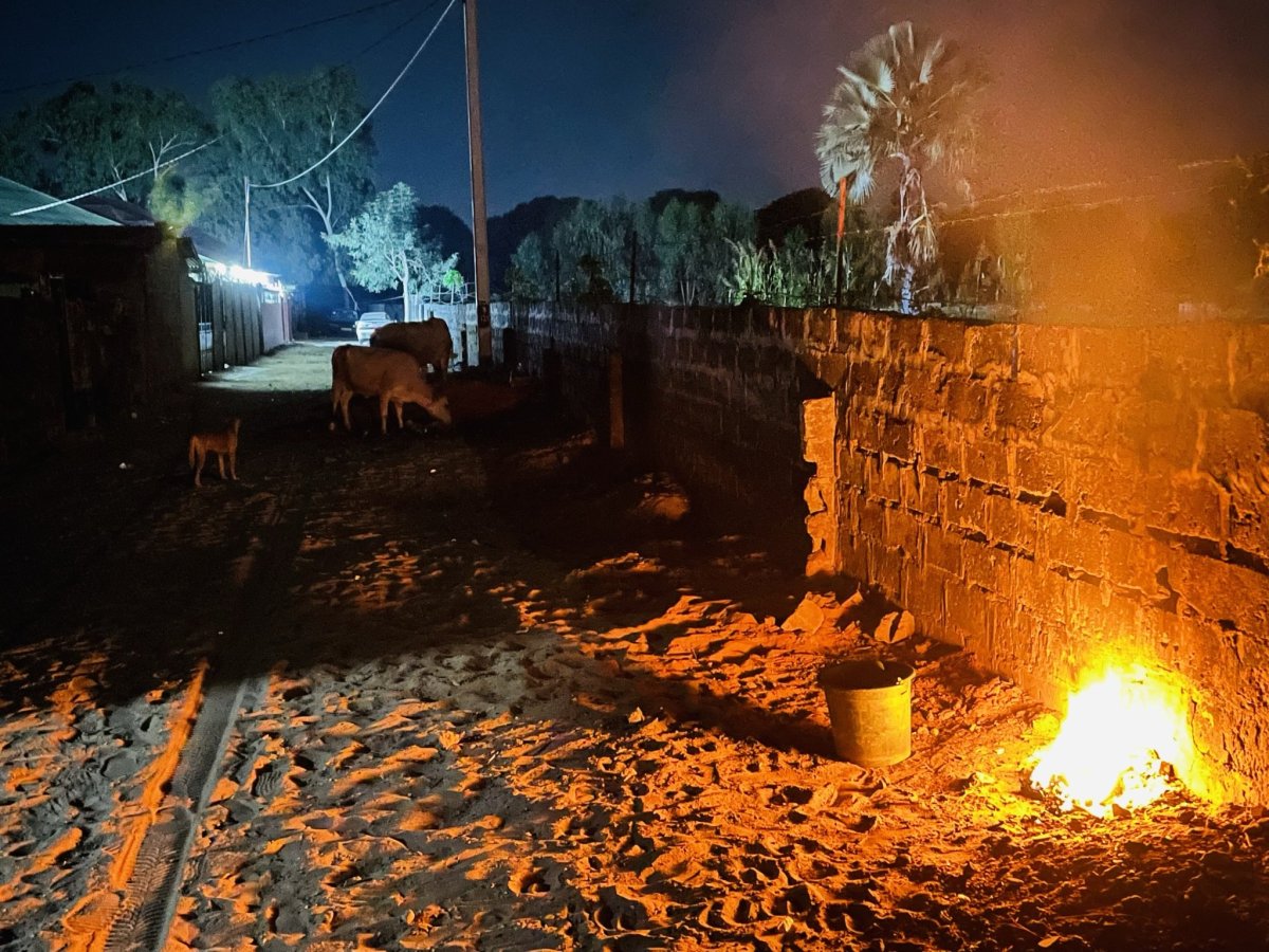 Po hodině a půl strachu, že mě vyhodí z auta a já strávím první noc v Gambii na ulici, místo mého odpočinku nacházíme. Sprcha a rychle ven. Dostanu přidělenou místní ochranku, ale to mě nebaví. Dám dědovi volno a vkráčím do černočerné tmy v níž tu a tam rozeznávám obličeje stejný barvy. Ještě, že už umím stáhnout mapu offline ... Jediný světlo tady je hořící oheň uprostřed cesty a blikající diskotéková bedna na další křižovatce okolo níž je tancuje místní omladina v počtu tři sta pařmenů a soudě podle jejich zvídavých očích nikdy nespatřící bělocha. Aspoň ne tady a v tomhle čase.