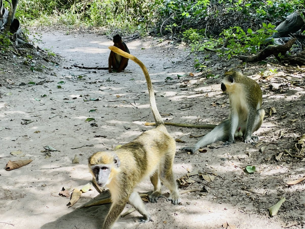 Kus džungle, vstupný 150 dalasi, vše s průvodcem, kterýho tvrdošíjně odmítám. Chci si to vychutnat sám, hlavně se na nikoho nevázat. Tak nakonec ano, dostanu ještě banán a pytlík buráků jako lákadlo na opice. V Panamě v deštným pralese jsem musel na zvířata číhat a tady mi doslova skáčou do cesty. Ptáci, ještěrky a hlavně desítky opic. Jsou hodně přítulný. V jeden moment jsem měl jednu obzvlášť nebojácnou skoro za krkem, což mi připomnělo období, kdy jsem za to uměl v hospodě pořádně vzít a mnohokrát si pěknou opičku přivedl domů.