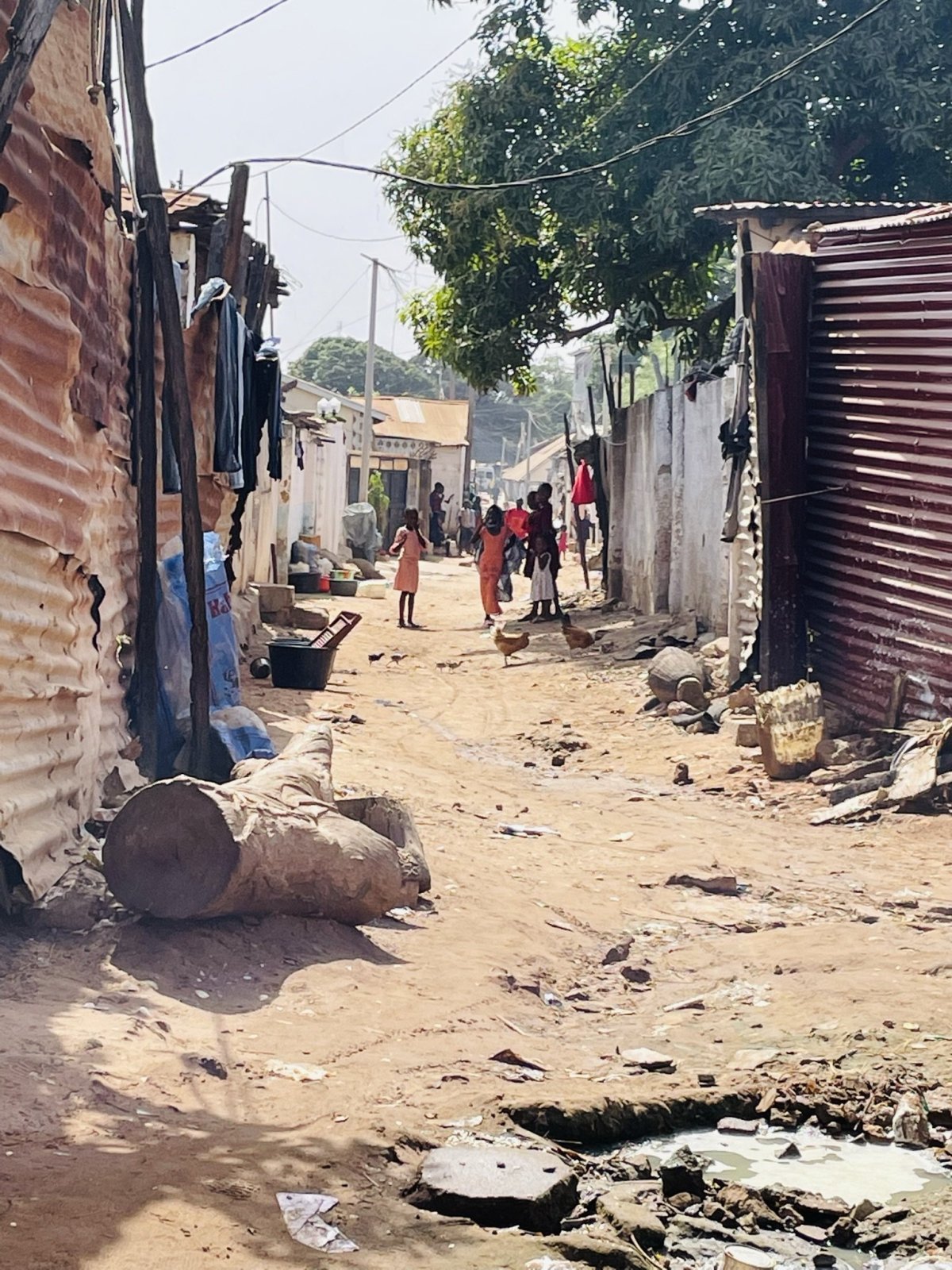 Ve Westfieldu jako poslední, dvaatřicátý nastupuju do dodávky pro patnáct lidí . Po cestě nejsou samozřejmě žádný zastávky. Každý vystoupí a nastoupí jak potřebuje a jezdí to tak nějak průběžně, jak to vyjde a za pár dalasi. Mým cílem je Brikama, poslední větší město před hranicí se Senegalem. Při přesunech uvnitř vozu se seznámím s Ousmanem, mladým důstojníkem gambijské armády. Ten mi zcela nezištně nabídne, že se mnou sjede do Senegalu. A takhle je to v Gambii pořád. Lidé tak chudí, ale tak přátelští a pohostinní. Nejdříve se stavíme v jeho vesnici Manduar pro doklady. Seznámím se jeho třemi malými děvčátky, dvěma (asi) manželkami a vyrážíme další dodávkou směr Jiboro ( poslední Gambijská vesnice) do senegalského Seleti. Každý světa znalý cestovatel ví, že na těchto pozemních přechodech se platí různé všimné. S Ousmanem však jen na občanku procházím zcela zdarma a zatímco můj přítel se jde modlit do mešity ( v Gambii je 90% procent muslimů), tak já trávím asi dvě hodiny v Senegalu. Chudoba obrovská, lidi stejně vstřícní jako v Gambii. Jen ploty na rozdíl od Gambijců mají z dřevěných kůlů. Ovšem stejně jako v Gambii je tu absence fotbalových míčů. Tedy kope se tu do něčeho co před mnoha lety asi byl míč a teď se tomu trochu podobá.