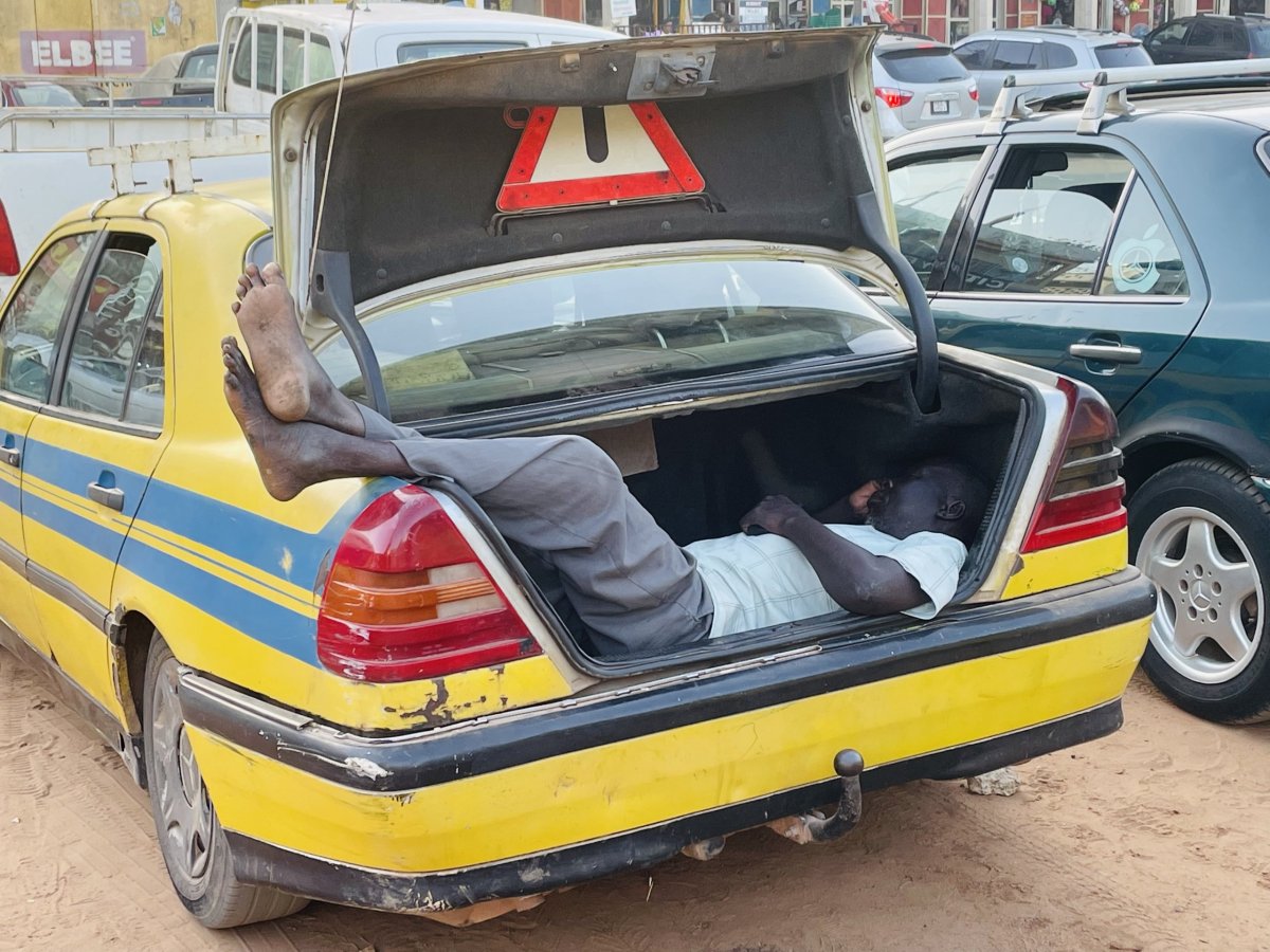 Opouštím letištní halu, vstupuju do tmy a už se na mě vrhají taxikáři. Zcela proti svým zásadám vyčkávat a smlouvat se chytám prvního, který mi nabízí odvoz za „ pouhých " 1100 dalasi. Dělám hrdinu, odmítám, smlouvám, ale ten chlapík si přizve dokonce jiný dva a ty mu cenu potvrzují. Nasedám do žlutýho vraku a vyrážím vstříc Gambii. Záhy opouštíme asfaltovou silnici a najíždíme na tankodrom. Jinak se stav místních komunikací nazvat nedá. Tady nejenže prakticky není pouliční osvětlení, tak asfaltový povrch mají jen hlavní silnice a vše ostatní je jak v nějaký bojový hře. Taky všechny auta jezdí na silně podhuštěných gumách, aby to vůbec zvládli. Evropská umělá zaměstnanost v podobě stanic STK se tu nenosí a tak jsou tu k vidění hodně zajímavý kousky.