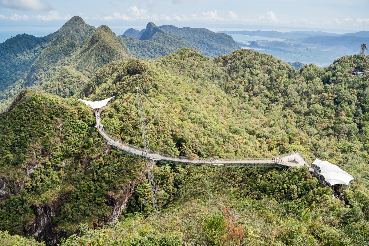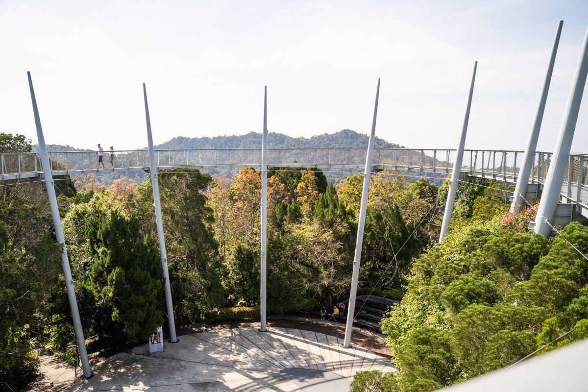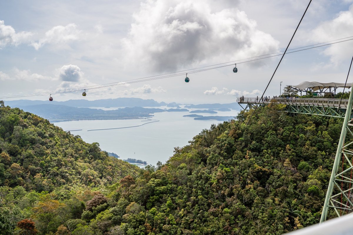 Snídáme kousek od ubytování, potom startujeme naši Peroduu (malajská značka aut, o které jsem nikdy předtím neslyšela) a vyrážíme ke Sky Bridge - visutém mostu na jednom pilíři na západě hlavního ostrova. Nahoru jede lanovka, ke které se nejde jinak dostat, než skrz Oriental Village, taková klasická past na turisty, ale s tím člověk holt musí počítat (v Camp nou taky končí tour v suvenýrech 🙂). Výhled stojí za to. projdeme si most i další vyhlídky, kromě horka a opic dožadujících se jídla od turistů, je vše parádní. Jsou vidět i další okolní ostrůvky.