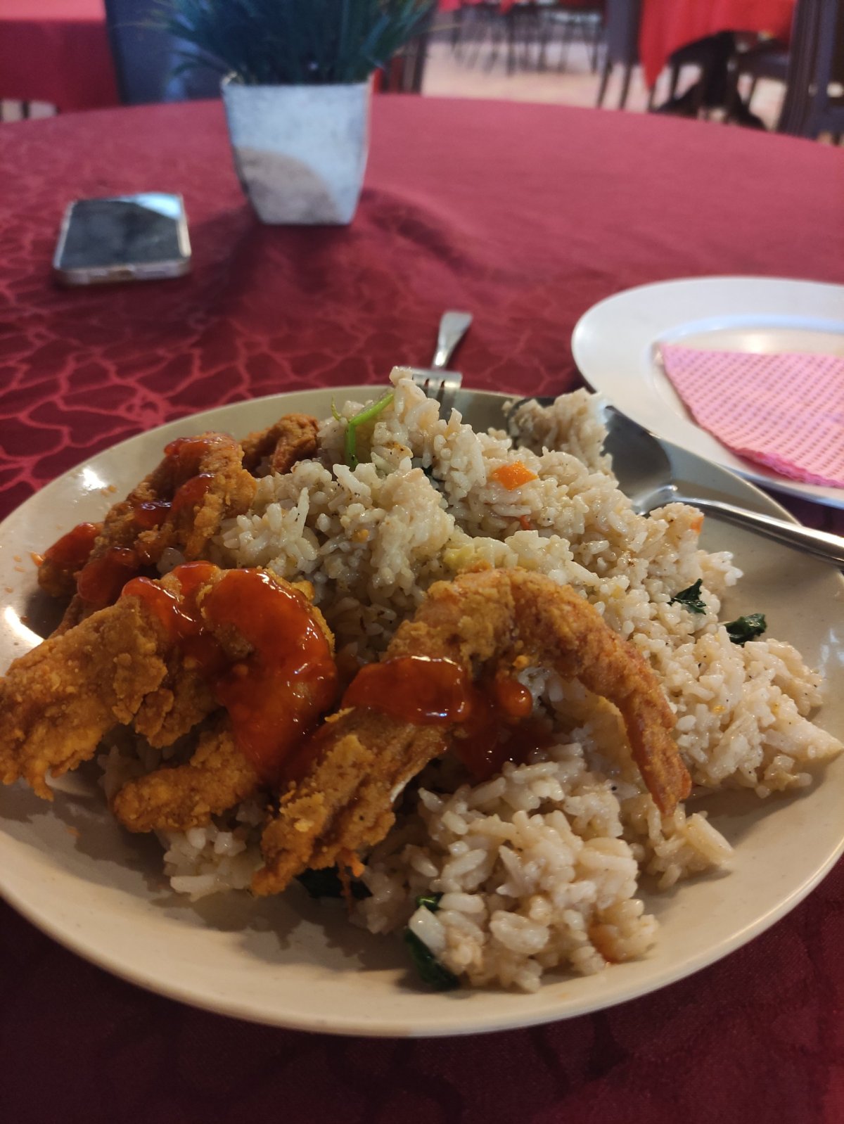 Předem jsem tu zabookovala auto, pán z půjčovny už mi na whatsappu (kterej tu klasicky funguje jako nejběžnější domlouvací prostředek) píše, že čeká před terminálem. Ve změti grabů a naháněčů se zájezdy nám předá klíčky, Elis sedá za volant a jedeme se ubytovat. Jízda vlevo. Ne, na to si prostě nikdy nezvyknu. A nejdivnější to je na kruháči. Stejně jako na Zélandu, místo blinkru pouštíme stěrače. Ubytování je krásný, jsou to malý chatičky v zahradě, kde je bar a posezení. Rovnou se pána ptáme, jestli má pivo, tak se směje: “no jo, Česká republika”. Ale pivo nemá, tak se vydáváme na procházku po pláži a okolí, kterou zakončíme na hlavní třídě, kde si dáváme nasi goreng, tedy smaženou rýži, s mořskými plody.