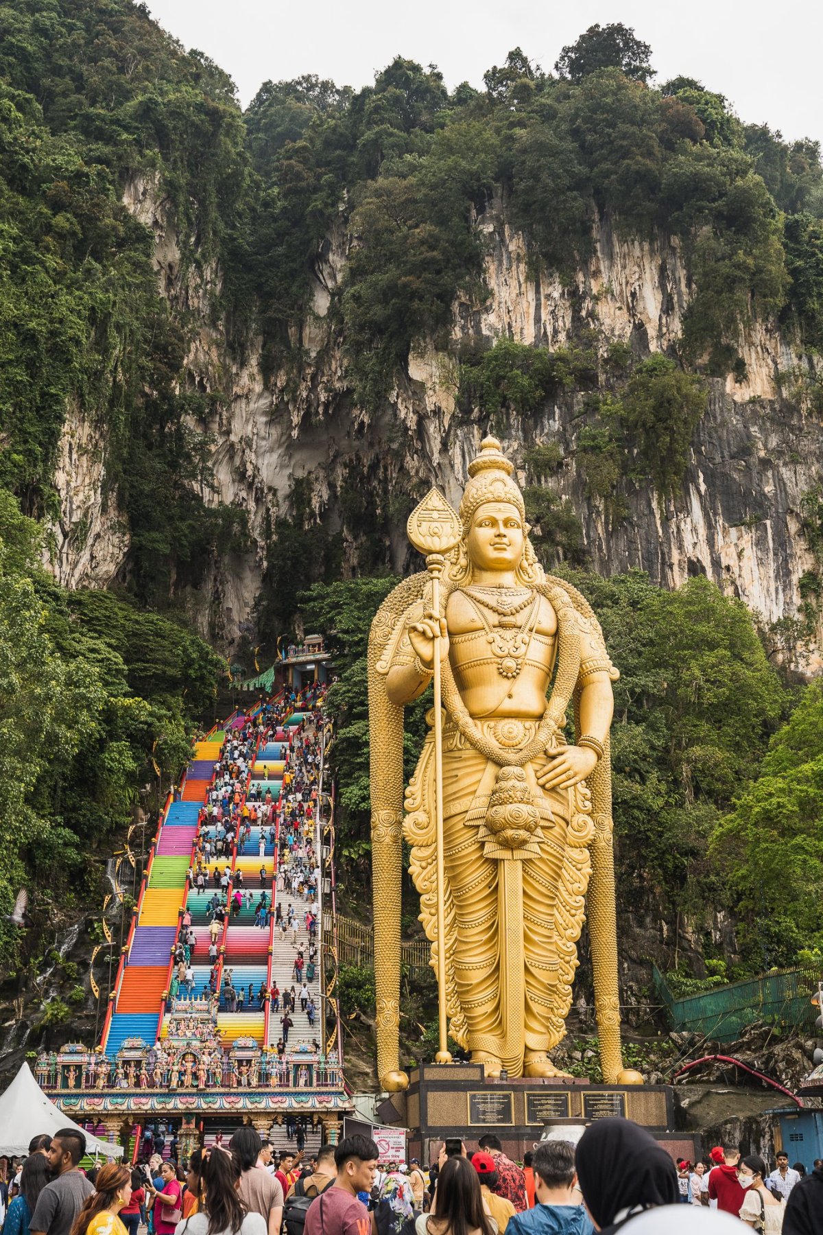 Další den se necháme grabem odvést k Batu Caves, další must see zastávce v KL. Je to jeskynní komplex, kam se jde po duhových schodech (275 schodů nám v tom horku dá trochu zabrat jo a bacha na opice!). Jeskyně jsou ve znamení hinduismu, takže tu krom Šivy a Ravana najdete spoustu dalších bohů, démonů, ozdob, vše v pro hinduismus typický barvitosti. Ale symbolem místa je bezesporu přes 40 metrů vysoká zlatá socha Lorda Murugana u vstupu, kterou lze vidět už z dálky. Ve zbytku dne jsme si prošly různý chrámy, krom těch hinduistických také buddhistické a taoistické a u nejstarší mešity v KL jsme se jen zastavily, stejně jako v historickym centru, kde je náměstí Merdeka a původní budovy slouží jako sídla ministerstev.