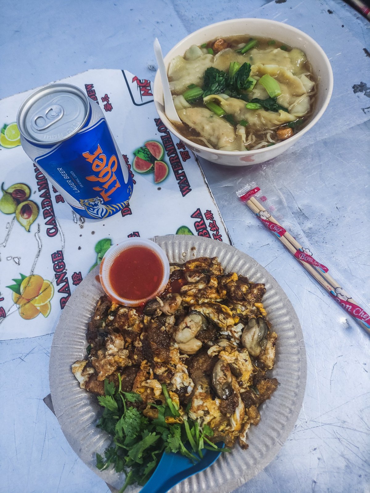 Další street foodová ulička, jídlo na Penangu bylo asi nejlepší z celý Malajsie. Já jsem šla na jistotu – o-a-tsian, ústřičná omeleta, kterou mi doporučil můj novej kamarád z letiště. Taky jsem mu hned psala, že to předčilo očekávání.