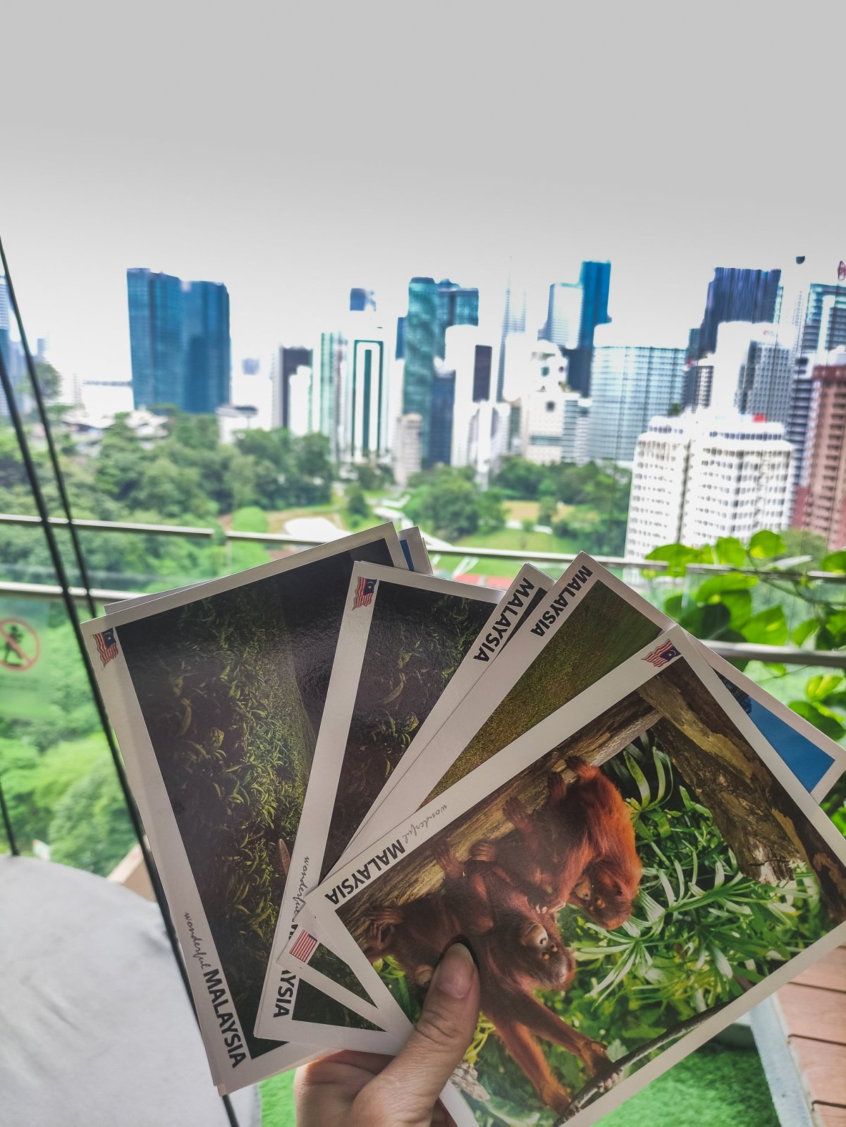 Nakonec přišla ta nejdůležitější část výpravy – posílání pohledů, který jsme na hotelu na balkonku dnes vyplnily. Jo, poslední den. A teď to ještě vypadá, že je asi neodešleme. Koupily jsme je v Batu Caves, známka do Evropy je skoro přes celej pohled (ale je levnější, než když v Čechách posíláte pohled), takže tu pachuť mám na jazyku ještě teď. Zachránila nás až paní recepční, když jsem se jí ptala, kde se to dá poslat, dala si je do kabelky s tím, že bydlí vedle pošty. Pohledy přišly měsíc po našem návratu a jeden jsem poslala i sama sobě (měla jsem z toho radost, než to někdo z mých přátel přirovnal k tomu, jak si Mr. Bean posílal vánoční přání 😀).