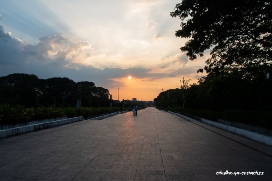 Následující den máme celý vyhrazený na prohlídku města. Už na první pohled působí město modernějším a čistějším dojmem než Yangon. Také se zdá, že tady jsou více zvyklí na turisty, po ulicích se mnohem častěji pohybují tuk-tuky a co chvíli na vás někdo volá. Nemáme pevně daný plán, a tak jdeme směrem k paláci, který snadno poznáte podle toho, že je obehnaný vodním příkopem a hradbami a uprostřed města zabírá plochu 4 čtvereční kilometry. Přicházíme k bráně, kde nám místní vysvětlují, že tohle není brána pro cizince a ta je naproti, takže 4 kilometry daleko. Proto se jdeme raději podívat na kopec nad městem.