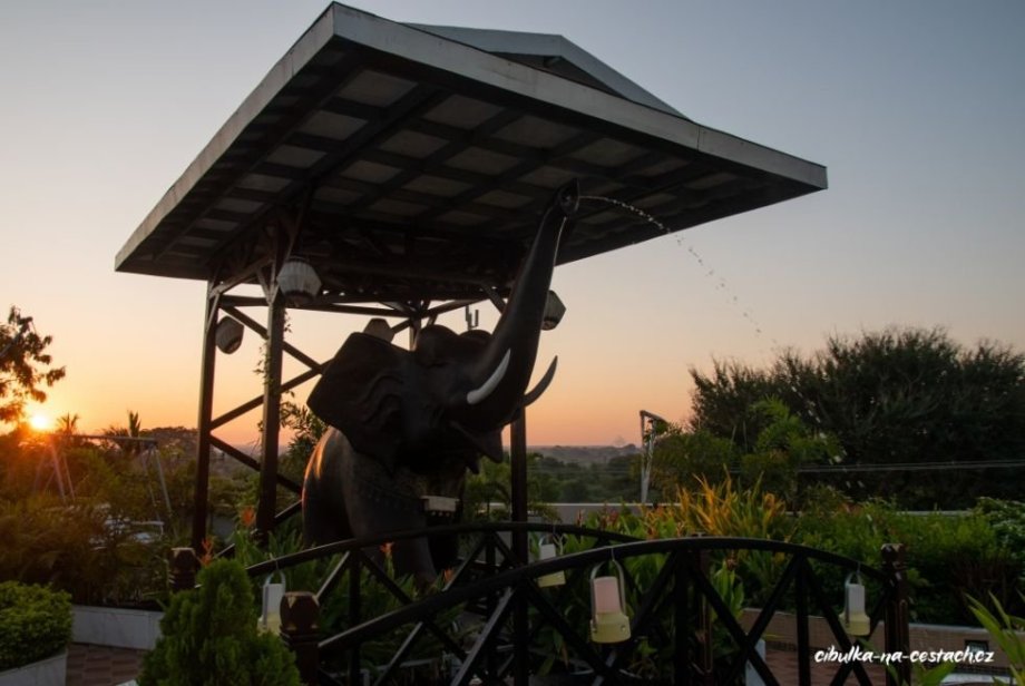 Během západu slunce se postupně mění barvy a prodlužují stíny, až nakonec mizí úplně. Nejlepší fotky vznikají až několik desítek minut před tím, než se slunce začne ztrácet nad horami na opačném břehu řeky Iravádí. Nicméně většina lidí čeká až na tento okamžik, kdy já už se pomalu chystám dolů, abych se vyhnul frontě k výtahu. Jaké je ale moje překvapení, když dole nemůžu najít Toma. Naštěstí aspoň vidím jeho skútr. Říkal, že je Valentino Rossi, takže snad číslo 46 patří právě jemu.