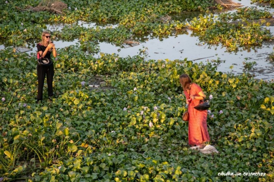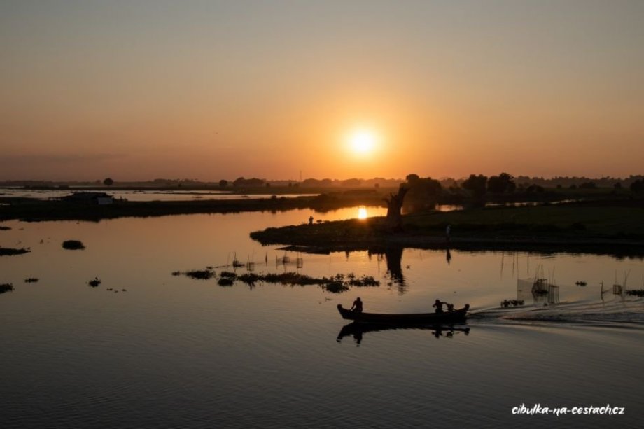 K mostu je to asi půl hodiny vzhledem k hustému provozu. Jedná se dřevěný most starý asi 150 let, postavený nad jezerem. V momentě, kdy přijíždíme, jsou už jak na mostě samotném, tak v jeho okolí snad tisíce turistů. Osobně jsem nečekal, že tohle bude největší turistický trhák celé Barmy. V bahně pod mostem si modelky špiní své značkové boty pro co nejlepší instagramové fotky. Bohatší turisté si zaplatí výlet lodí na jezero a fotí si zbytek turistů, kteří se tísní na mostě samotném. Most nemá zábradlí a místy se pod náporem turistů dost prohýbá. Fotíme tedy jako všichni ostatní západ slunce a mizíme zpět. Náš řidič tuk-tuku na nás čeká. Jak by také ne, když ještě nedostal zaplaceno, a tak nás veze zpět do města k našemu hotelu.