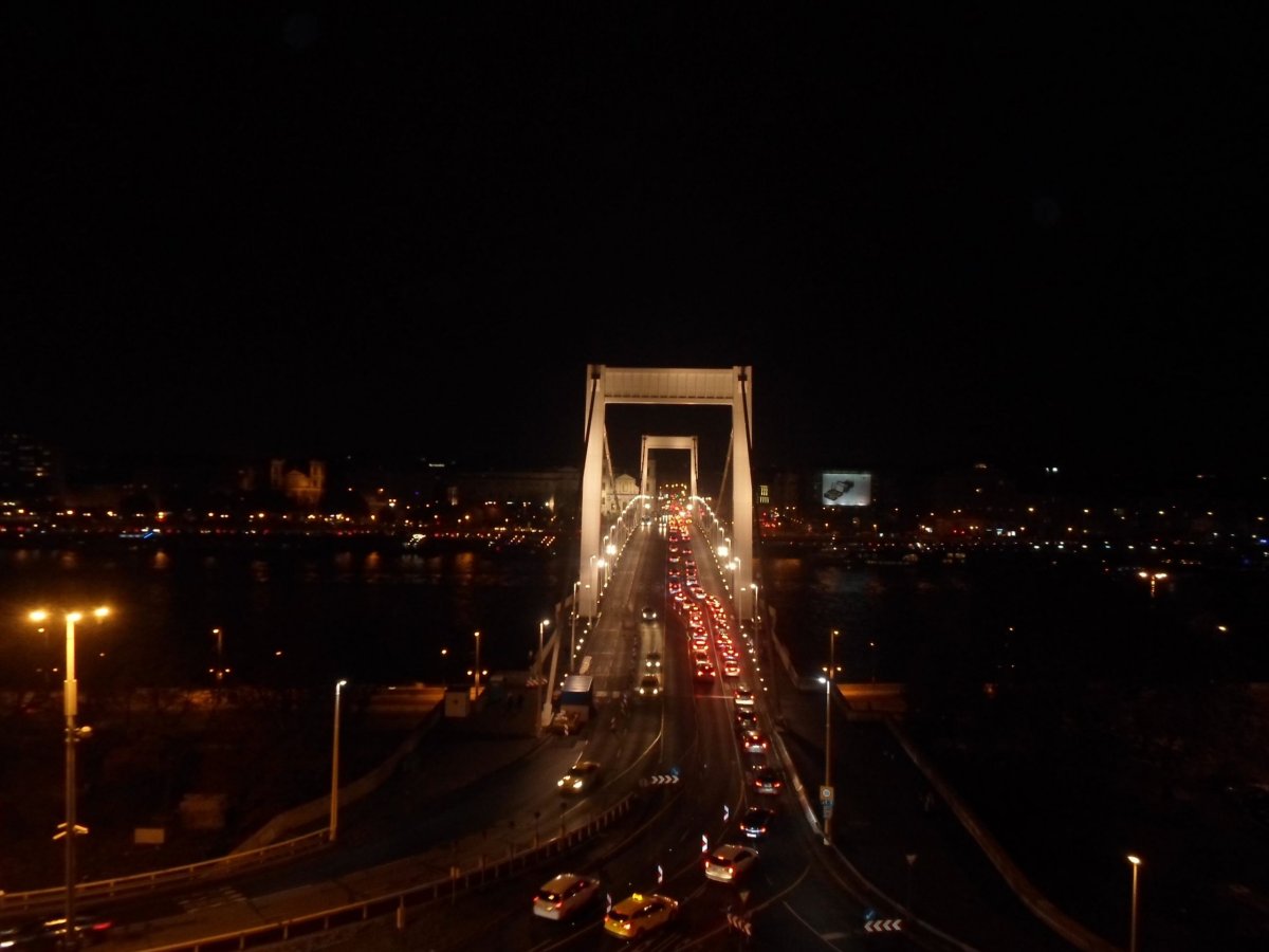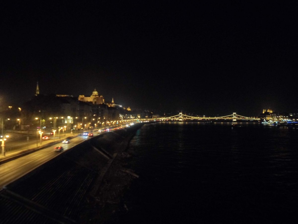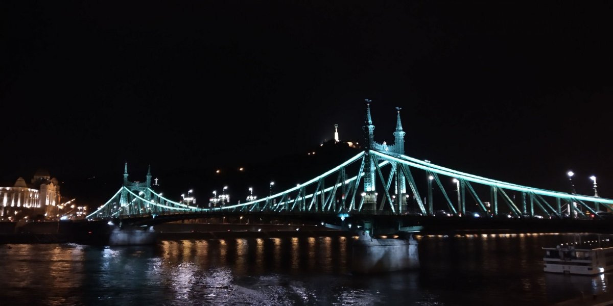 Následně pokračovala cesta opět na nádraží Budapest Keleti, které bylo momentálně jediným místem, odkud jede metro M4, a na které jsme se dokázali dostat bez navigace. Odtud jsme vyrazili opět metrem, tentokrát na zastávku Kálvin tér. Odkud cesta směřovala opět k Mostu Svobody, tentokrát již za tmy. Byl to opravdu jeden z nejkrásnějších pohledů.