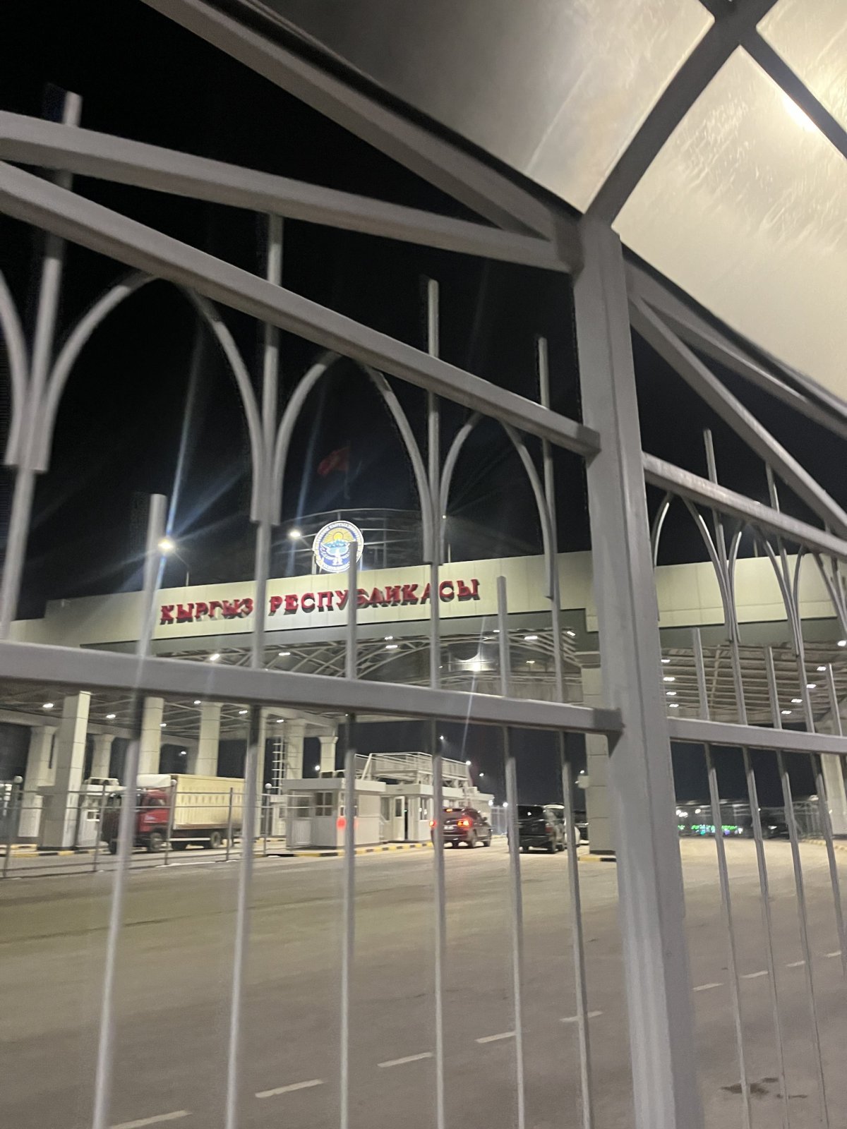 S naším řidičem se loučíme na hranicích, hraniční přechod zvládáme do půl hodiny. V Kyrgyzstánu je o hodinu víc, a tak virtuálně přicházíme o další čas. Za hranicemi se o nás málem poperou místní taxikáři, poprvé se cítím "ve stánech" nepříjemně. Na hranicích měníme trochu hotovosti a nakonec volíme cestu autobusem, který na nás dokonce i chvíli počkal, než jsme si směnili peníze.