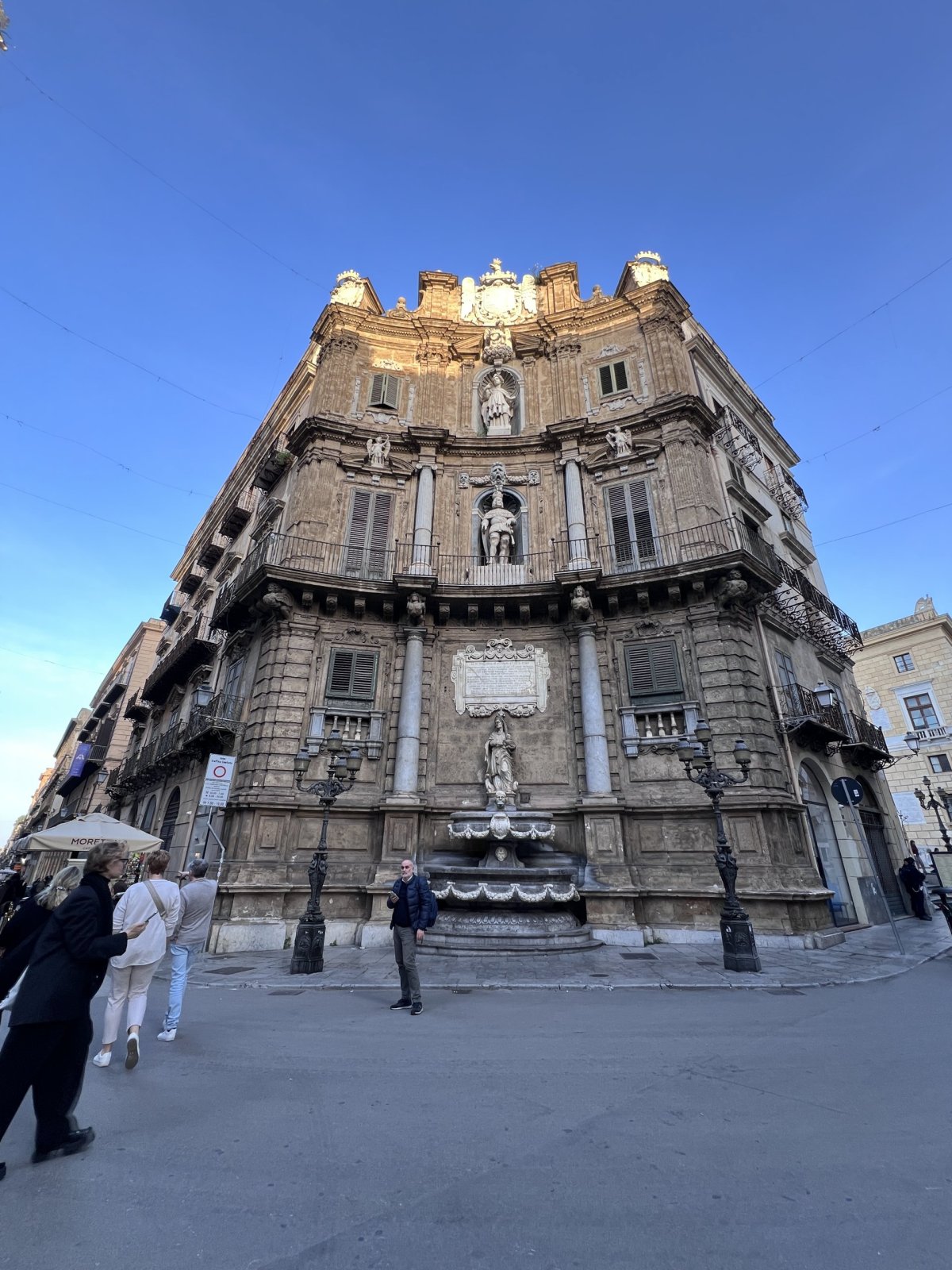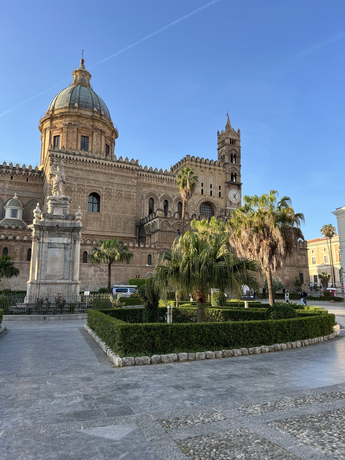 Vyrazili jsme od pošty a opery směrem na Via Porta Carini, pak pokračovali kolem katedrály (opravdu krásná) a dorazili ke královskému paláci Palazzo dei Normanni. Bohužel trh Ballarò už byl po zavíračce a podle atmosféry v okolí jsme si nebyli úplně jistí, jestli tam chceme zůstávat, takže jsme se radši rychle vrátili zpět víc do centra.