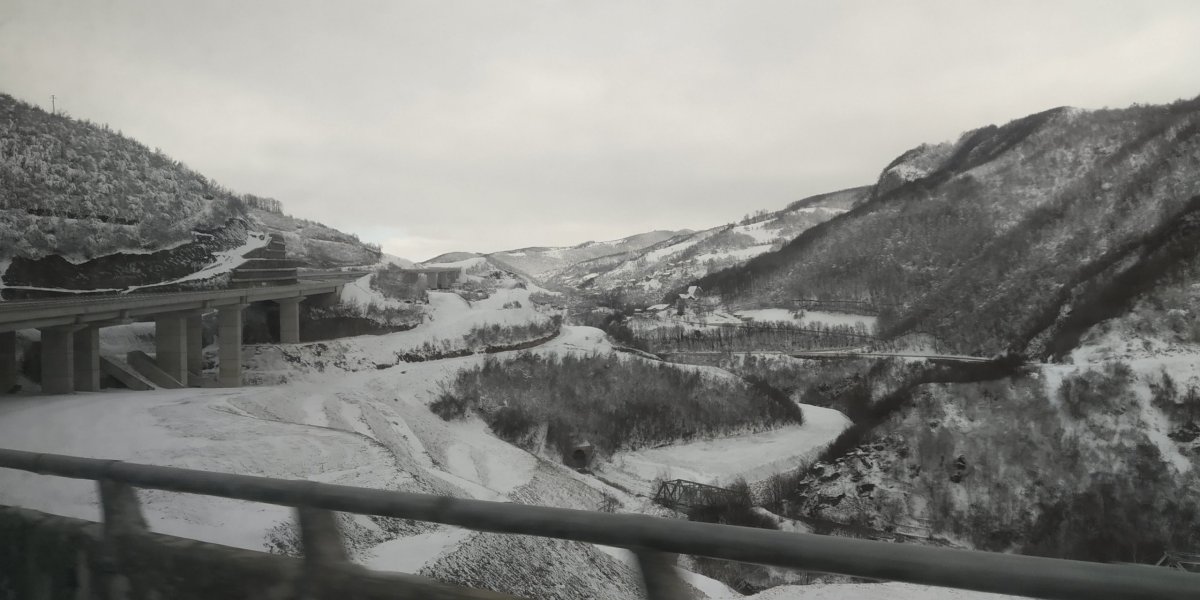 Po překročení hranic následuje ještě přibližně hodina jízdy. Hned po překočení hranic jsme zjistili jeden poměrně smutný fakt. I v Kosovu, jakožto zemi o které polovina lidí ani neví, mají lepší dálnice, než v ČR. Také doporučuji nastartovat fotoaparát, přibližně polovina cesty přes Kosovo prochází krásným údolím, které můžete vidět na fotce níže.