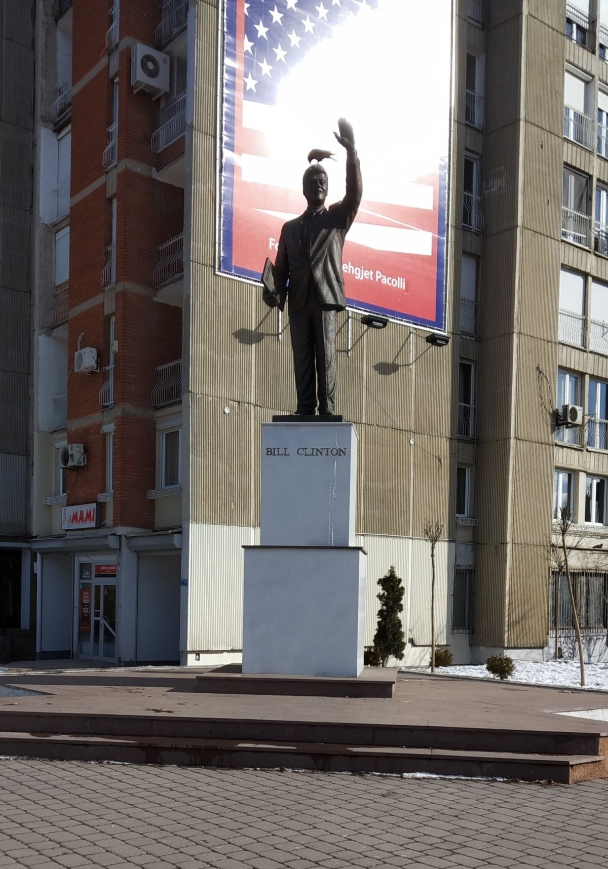 Prvním rušnějším místem je "Bulvár Billa Clintona", kde se nachází i velký památník tohoto bývalého amerického prezidenta. Ten se v Kosovu těší nebývalé oblibě, často je zde i nazýván spasitelem. Je považován za člověka, který zde v roce 1999 zabránil hrozící genocidě albánského obyvatelstva a díky němu svitla Kosovu naděje na úplné osamostatnění od Srbska.