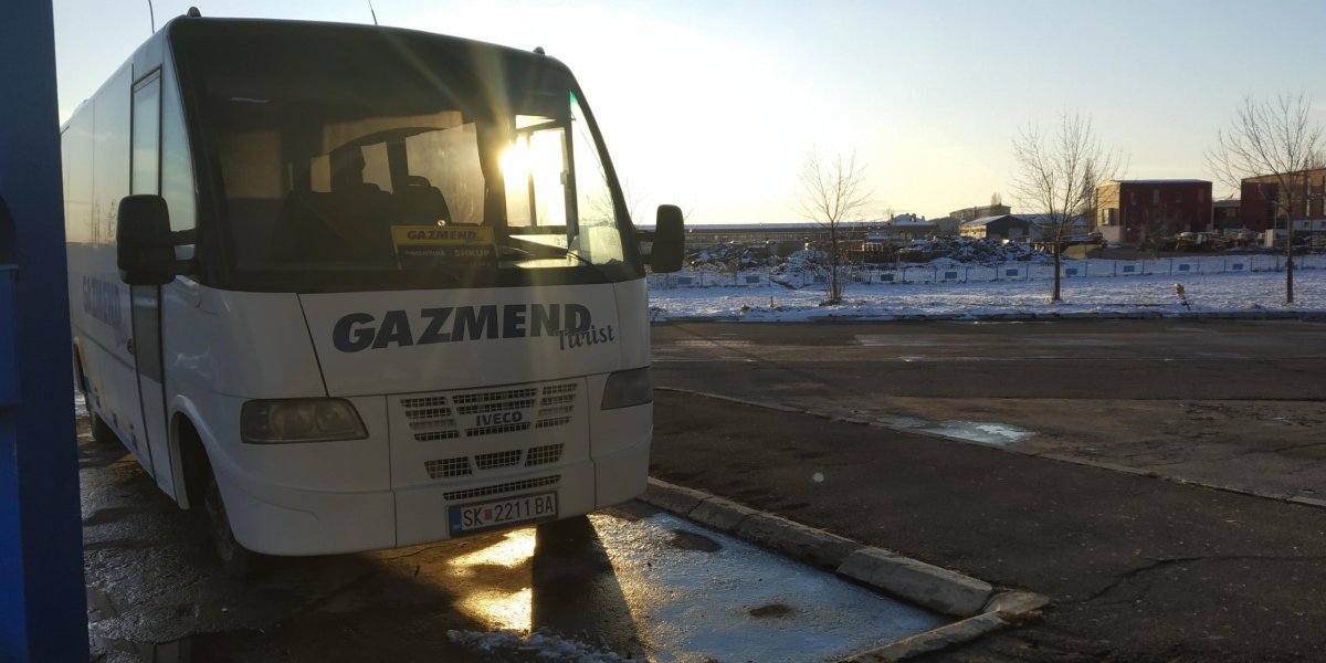 Pro návrat do Skopje jsme využili spoje v 17:00, který provozuje společnost Gazmend Turist. Opět se jednalo o minibus, tentokrát, alespoň podle nápisu, od výrobce Iveco. Co to je přesněji se ale určit neodvážím. Také nutno poznamenat, že tentokrát vypadal minibus v mnohem lepším stavu, kromě faktu, že z jeho hlučnosti mě na konci cesty začínala bolet hlava.
