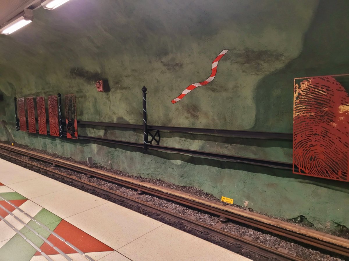 Mimochodem, Stockholmské metro je nádherně zdobené a zatím jsem ještě nikde neviděla hezčí. Posuďte sami.