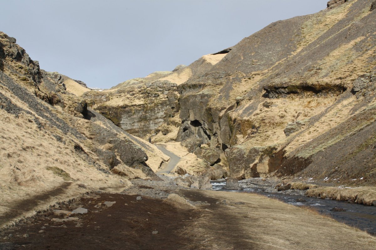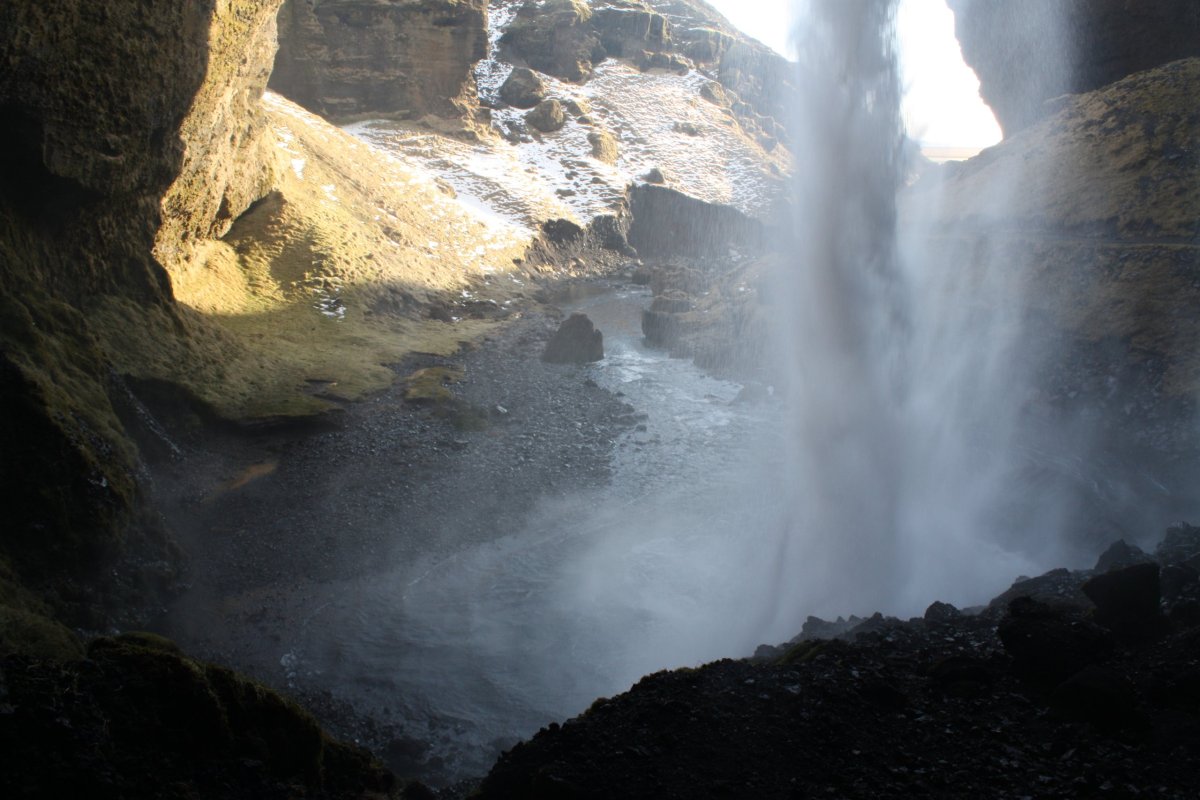 Vodopád je necelý kilometr od parkoviště. Je to pěkná cesta proti proudu říčky Kverna. Tento vodopád je specifický tím, že se dá vlézt pod něj. Je tam totiž skalní převis. U parkoviště je ještě skanzen Skógar s původními kamennými domečky se střechami porostlými trávou a kostelíkem. Domky sem byly přemístěny z různých částí Islandu. Skanzen už je sice zavřený, ale z venku si domečky prohlédnout lze.
