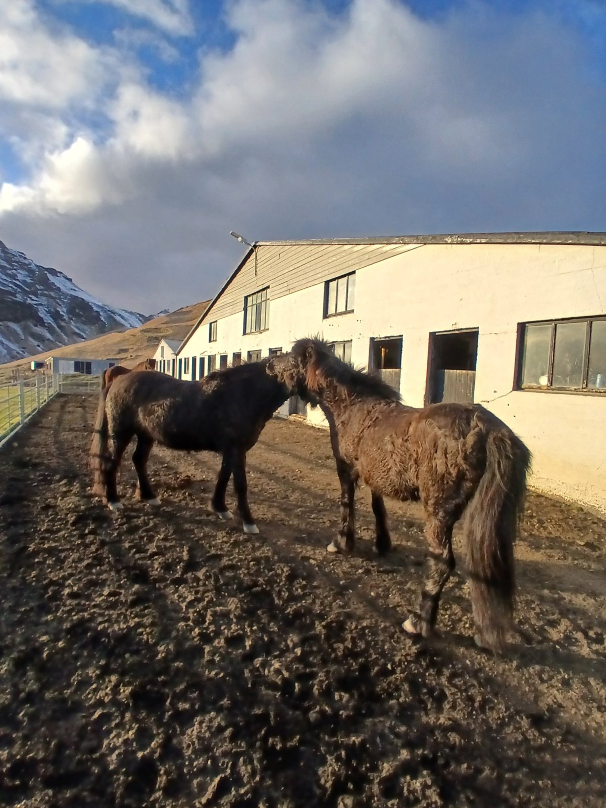 Čekáme a sluníčko se pomalu kloní k obzoru a začíná být trochu zima. Auta stále nikde. Projdu se po okolí a seznámím se s místními poníky. Skoro za tmy přijíždí naše toyota a chvíli po ní i druhé auto. Malý osobák. Všichni už jsme dost vymrzlí, takže se nám ulevilo. Bohužel předčasně. Někdo to blbě spočítal, do aut se všichni nevejdeme. Dva lidé přebývají. Začíná to připomínat grotesku. Nějak se tam nacpeme, samozřejmě předpisům to úplně neodpovídá, ale to už je v tuto chvíli každému fuk.