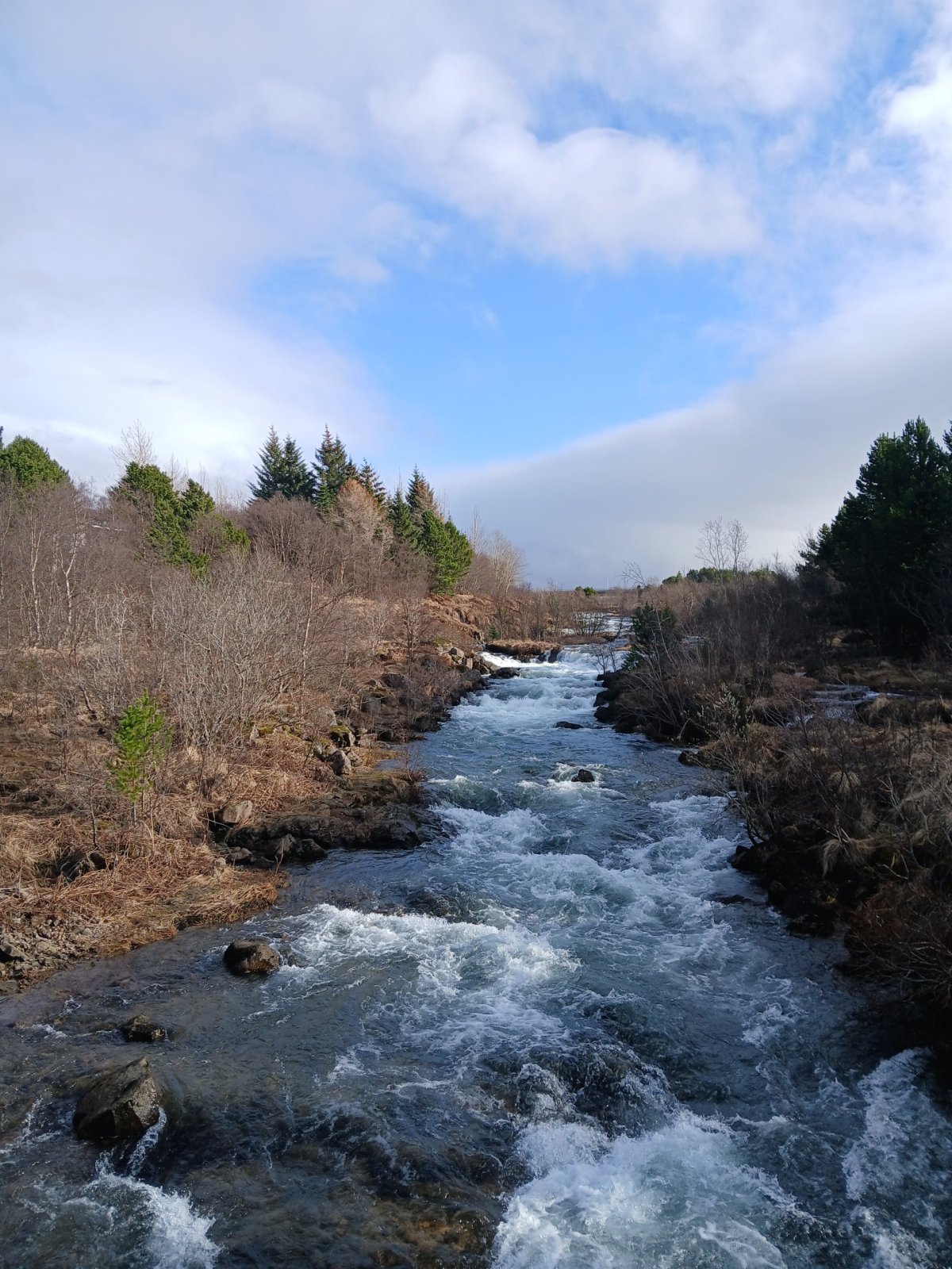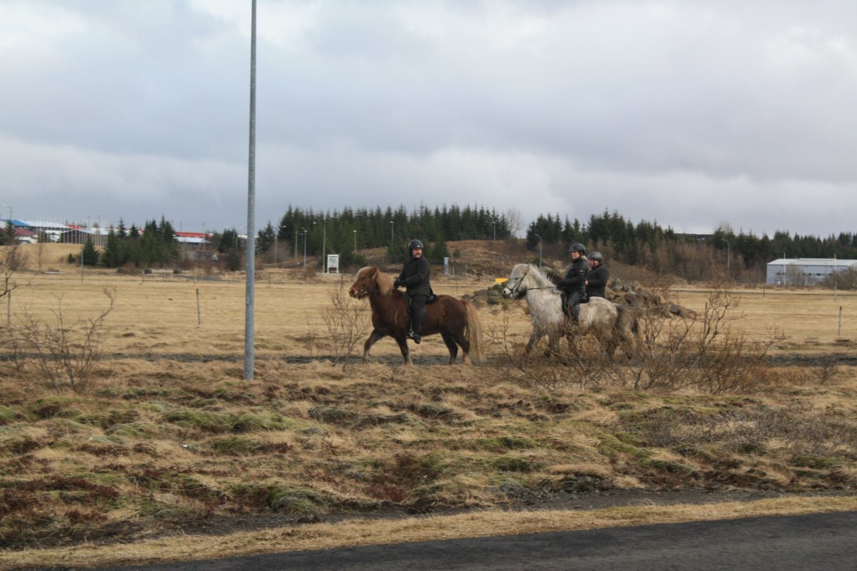 Ubytuji se, a protože je pěkný den, vyrazím na pěší výlet na kraj Reykjavíku, cílem je přírodní rezervace Heiðmörk a jezero Elliðavatn. Jdu proti proudu řeky Elliðaár. Od hostelu je to zruba 16 km mírně do kopce. Je moc pěkný den, a protože je víkend, potkávám, běžce, cyklisty, a jezdce na ponících. Vypadá to jaksi nepatřičně, když na tak malém koni jede dospělý.. ale koníci jsou silní a zátěž zvládaií. Sníh téměř úplně zmizel, všude je jaro. Je to zvláštní, jak rychle se tady příroda probouzí. Obejdu jezera, je tu nádherně a pak zamířím mezi baráčky najít zastávku autobusu. Jezdí tady městská doprava a zpátky se mi už nechce jít pěšky. Musím najít správnou zastávku, autobus tu totiž různě točí. Zároveň se podívám, kde vystoupím zítra. Zastávka Helluvað se jeví jako nejlepší. Je kousek od benzinové pumpy na výpadovce z Reykjavíku, tady bude dobré místo na stopování.