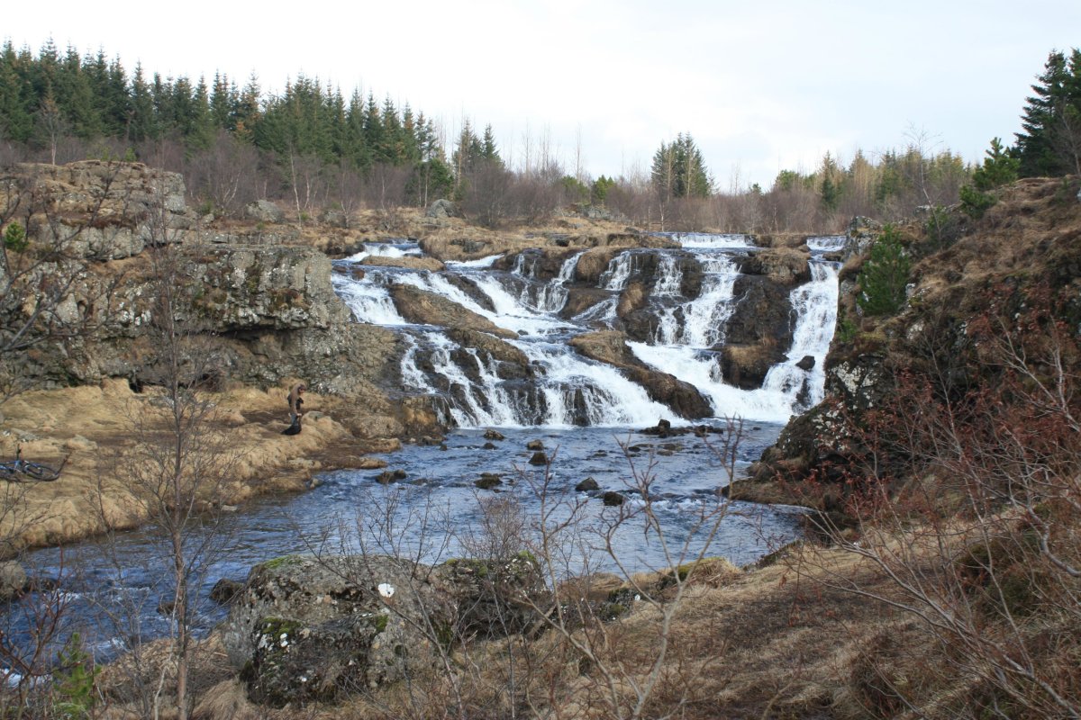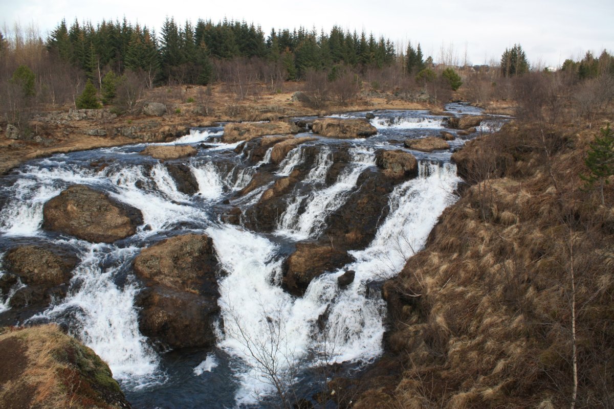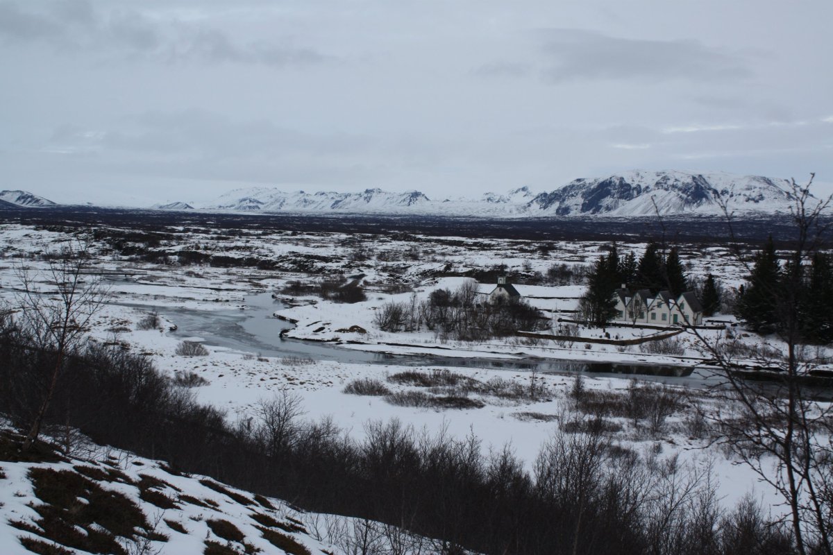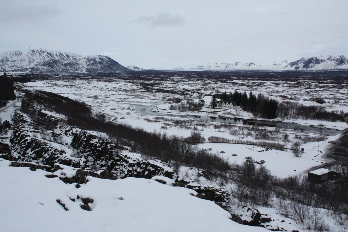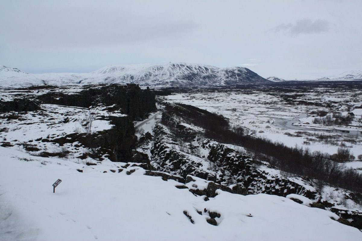 Poslední zastávkou je Národní park Þingvellir (přepisovaný jako Thingvellir), který je od roku 1983 zařazen na seznam UNESCO jako kulturní památka kvůli pozůstatkům nestaršího parlamentu světa Althing – byl založen kolem roku 930 a zasedalo tu 36 kmenových náčelníků, kteří rozhodovali o pravidlech života na celém ostrově. To ovšem není jediná zajímavost tohoto místa. Celá oblast leží v příkopové propadlině přesně na zlomu severoamerické a eurasijské tektonické desky. Uděláme si tu asi hodinovou procházku mezi čedičovými skalami, k vodopádu Öxarafoss, dolů ke kostelíku a jezeru a pak na parkoviště, kde na nás čeká Sofie s autem.