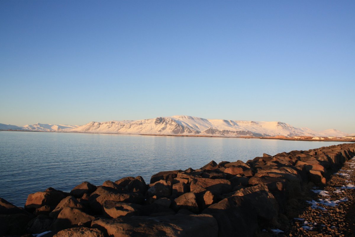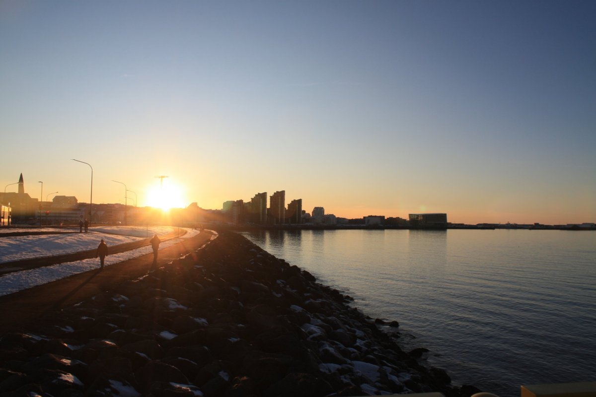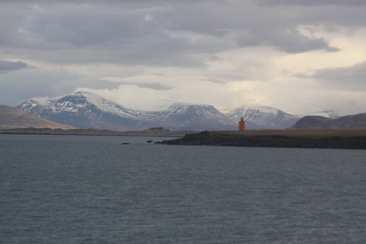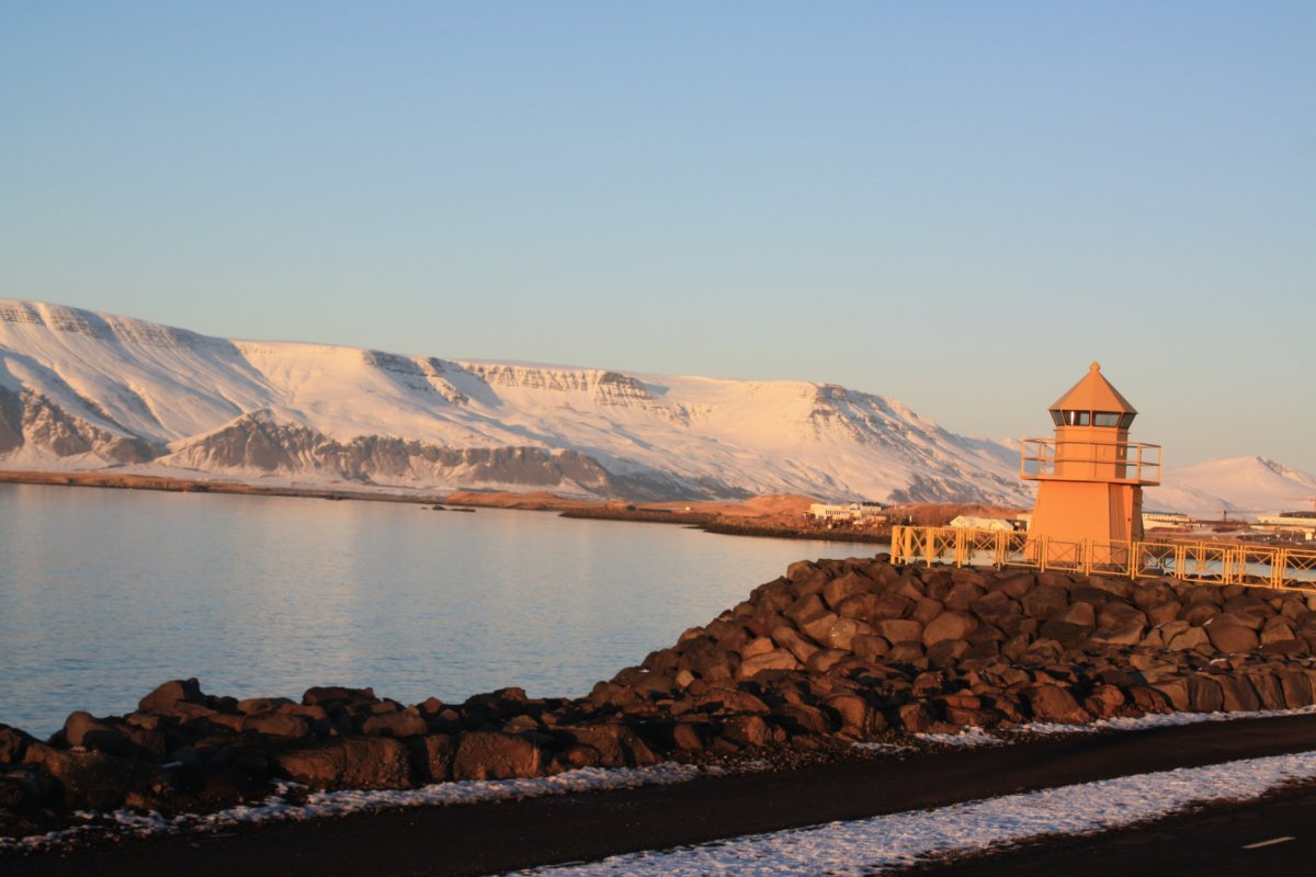 Pak vyrazím do sídla organizace SEEDS, které je kousek odtud. Sraz tu máme sice až večer, ale chci si tu nechat nějaké věci. Tady v centru mají jen kancelář, bydlet budeme jinde, ale věci si tu můžu nechat. Trochu si odpočinu, dostanu kafe a dojdu si na WC. Pak vyrazím na prohlídku Reykjavíku. Chci dojít na poloostrov Seltjarnes k majáku. U kostela už jsem byla, takže vyrazím opačným směrem k moři. Tady zima ještě neskončila, všude leží sníh. Počasí je takové islandské, to znamená každou chvíli jiné. Chvíli svítí sluníčko, chvíli sněží nebo prší. Co je ale stálé, je dost silný studený vítr. Teplo prostě vypadá jinak. Nicméně jsem dobře oblečená, a když se člověk hýbe, dá se to vydržet. Projdu okolo Harpy – moderní budovy opery. Minu přístav, podívám se k jezeru Tjörnin na radnici a parlament a pak pokračuji dál po pobřeží. Se zastávkami mi to trvá skoro dvě hodiny. Je odliv, takže se dá přejít suchou nohou až k majáku. Je tu nádherně.