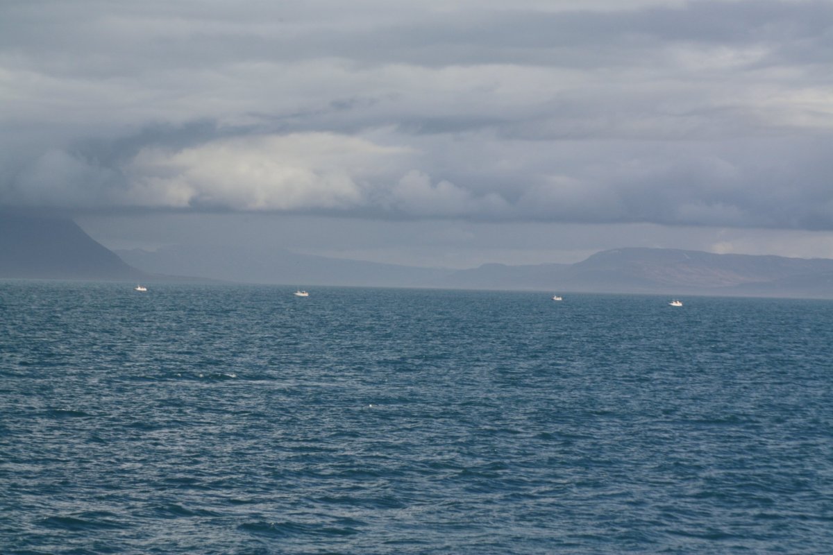 Jako jindy u podobných plaveb se kapitán už nesnaží objevit jinou velrybu, ale vrací se zpět do přístavu. Moře je občas šedé, obloha zamračená, pak se najednou roztrhnou mraky a kousek moře ozáří slunce – barva se změní na tyrkysově modrou. Je to nádherná hra barev. Dokonalé přírodní divadlo. Okolní hory už jsou skoro úplně bez sněhu. Když jsem přiletěla, byly bílé.