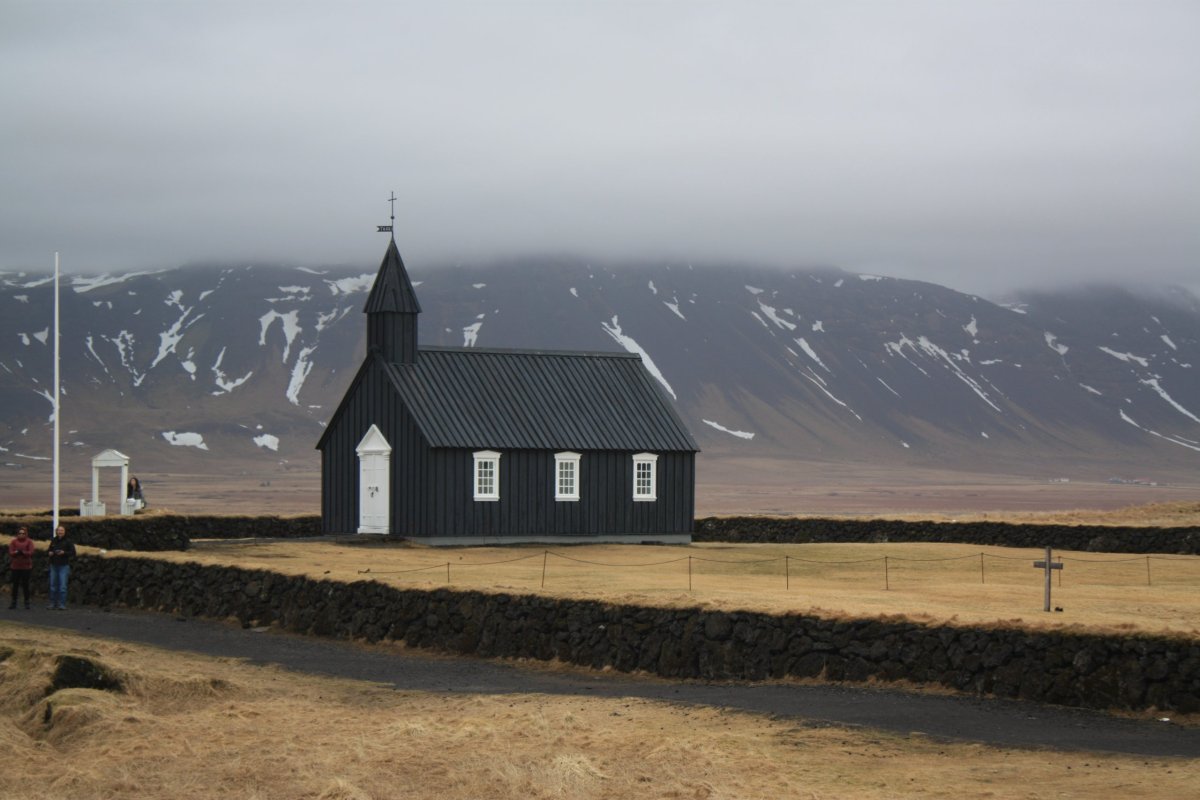 Další zastávkou je černý kostelík Budakirkja. Takové to must see místo. Osobně bych ho klidně vynechala. Co se mi ale líbí, jsou okolní lávová pole porostlá vřesem. Pokračujeme k Arnarstapi, celkem malebné rybářské vesničce s nádherným pobřežím.