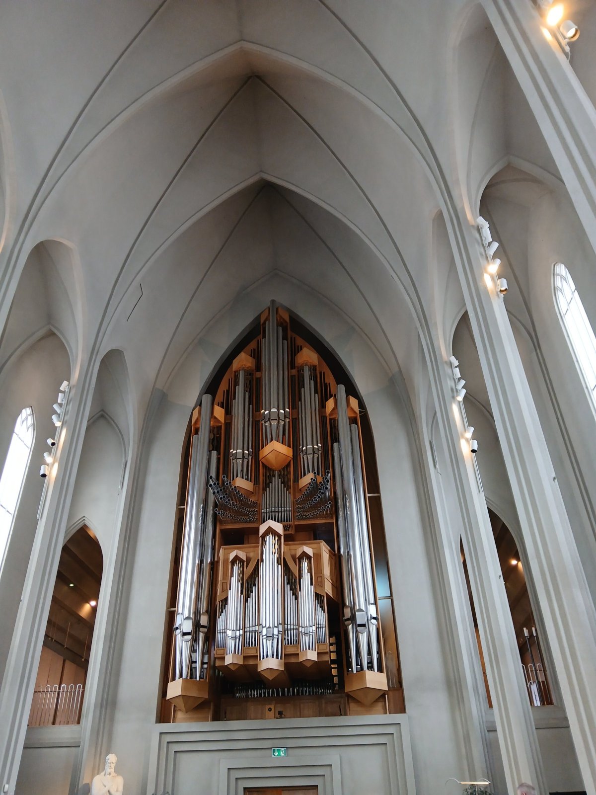 Když už jsem tady, jdu se podívat dovnitř. Hallgrímskirkja není na naše poměry nijak starý – jeho stavba započala v roce 1945 a stavěl se 41 let. Je to místo s moc pěknou atmosférou. Nějaký pán tu hraje na varhany, posadím se a užívám si ten pocit klidu a zvláštní energie.