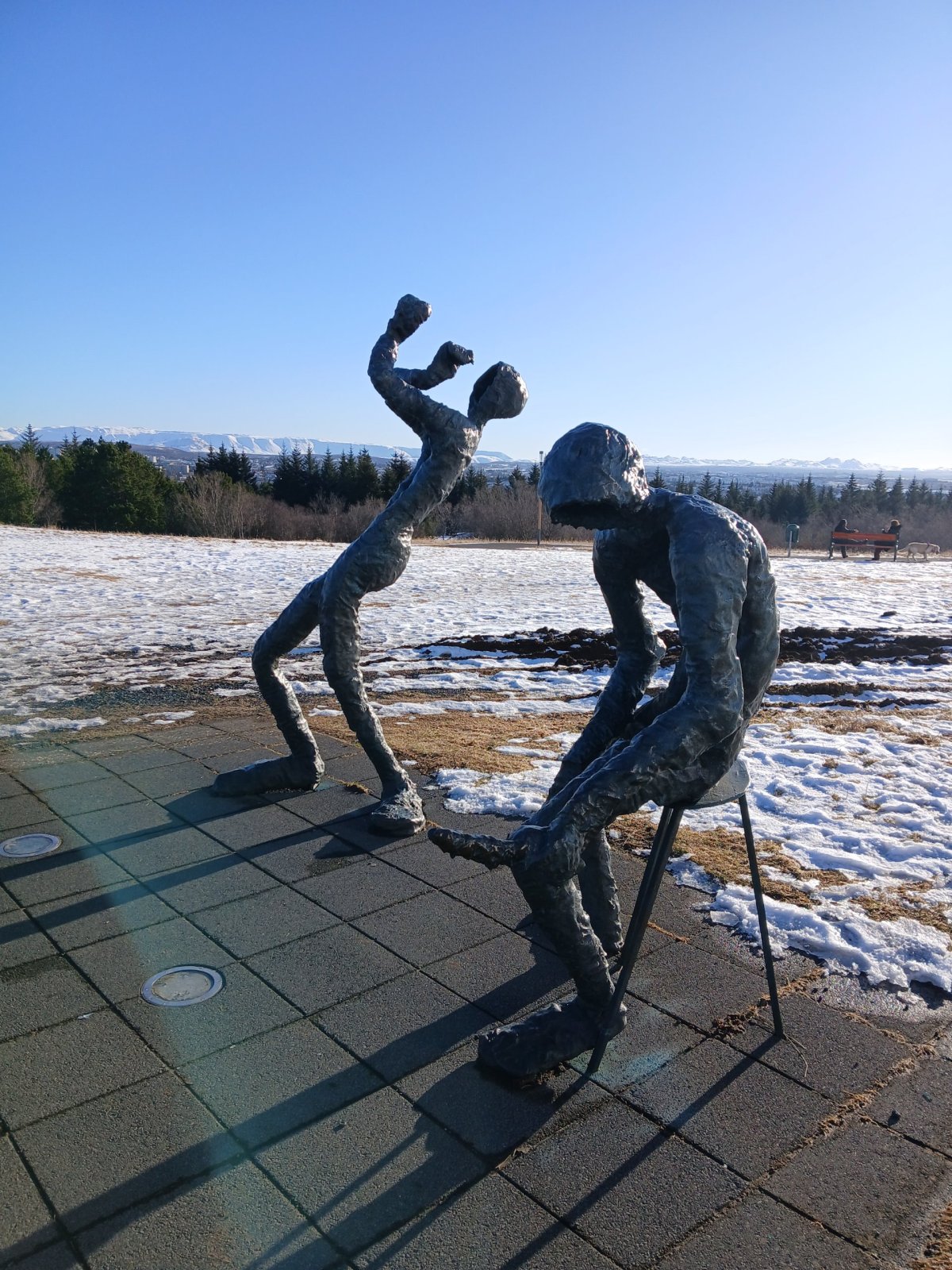 Trhnu se od skupiny, chci jít sama. Nejprve vyjedu na věž kostela, je krásný slunečný den a výhledy jsou parádní. Za vyjetí výtahem se platí 1400 ISK, ale jak poznamenala Sofia – stejně to nikdo nekontroluje. Jako ostatně mnoho věcí tady, prostě buď zaplatíte, nebo ne. Je to čistě na vás. U kostela ještě navštívím Höggmyndagarðurinn – zahradu se sochami u Einar Jónsson Museum. Do zahrady je vstup volný, do muzea se platí.