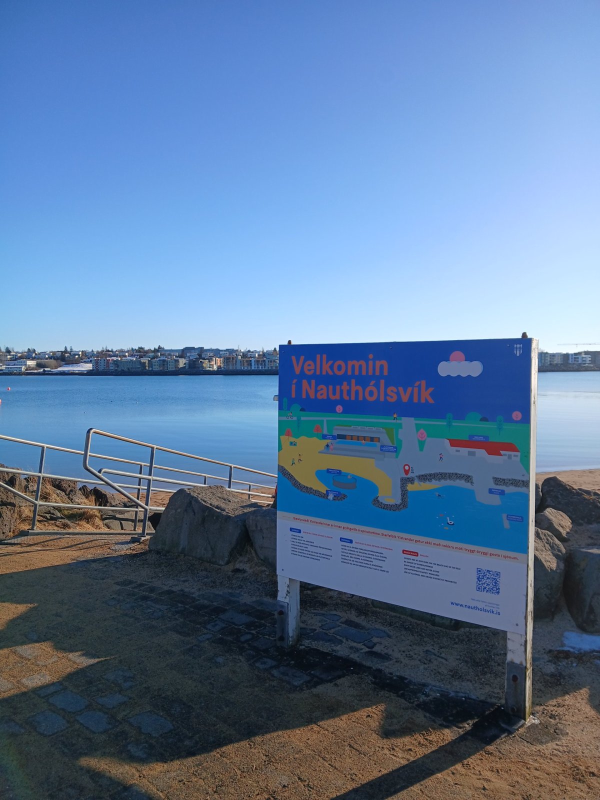 Po té směřuji na jih. Mým cílem je Nauthólsvík pláž s horkým termálním pramenem, který se míchá s mořskou vodou a vytváří tak vodu snesitelné teploty. Pláž funguje jen v létě, ale i v tomto období se tady za větrem u bublajícího pramene sluní pár lidí v plavkách a čepicích. Jdu přes zalesněný kopec, na kterém trůní muzeum Perlan a zpátky se vracím okolo městského letiště. Je tu nádherně.