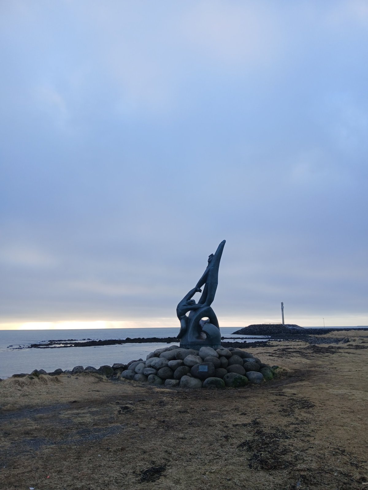 Zpátky do ubytování mám v plánu vrátit se po severním pobřeží. Prohlédnu si proslulou sochu Sun Voyager, kterou je vážně těžké vyfotit bez křečovitě se zubících turistů. Zastavím se u Hofdi house, v roce 1986 se tady tvořily dějiny, konal se tu summit mezi Ronaldem Reaganem a Michaelem Gorbačovem, který vedl k ukončení studené války. Pak pokračuji dál k majáku. Slunce se pomalu kloní k obzoru, je nádherné světlo na focení. Potkávám tady skupinu dobrovolníků a do ubytování dojdeme společně.
