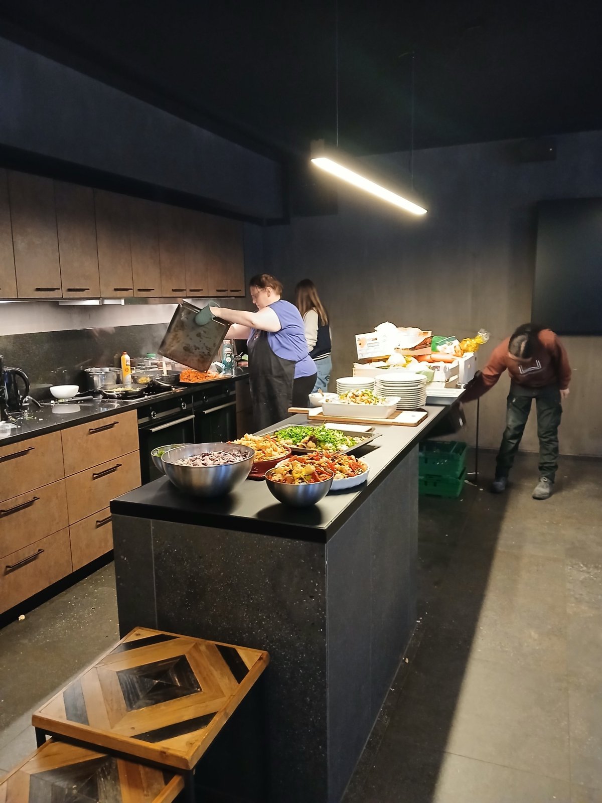 Den zakončíme na happeningu jedné neziskovky, kde se vaří večeře z jídla, které supermarkety vyhazují. Trochu u toho asistujeme. Jídlo je výborné, součástí je i přednáška, kolik jídla se vyhodí zbytečně apod. Faktem je, že to, co tady supermarkety vyhazují, by u nás klidně prodaly. U nás procházející věci nebo omačkanou zeleninu či ovoce prostě zlevní. V lepším případě dají do bedýnky za nějakou symbolickou cenu. Tady můžete narazit na bedýnky s celkem pěkným ovocem za kasou zdarma. A náš workcamp zásobuje jedna místní pekárna výborným pečivem, které se den před tím neprodalo, také zdarma.