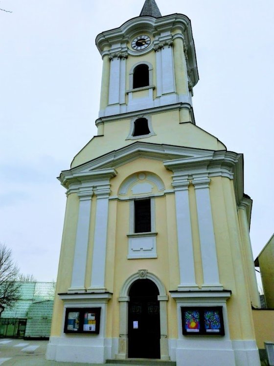 Keď vyjdete z budovy, pozriete sa na západ smerom k Bécsikapu tér na Kazinczyho ulici, štvrtou zastávkou prechádzky je veža karmelitánskeho kostola . Kostol bol postavený v rokoch 1716 až 1725 podľa plánov Mártona Wittwera, karmelitánskeho brata a architekta narodeného v Tirolsku. Rehoľa bosých karmelitánov, ktorá bola v Uhorsku po prvý raz usídlená v Győri, nemala vlastné majetky, ale bola podporovaná len z milodarov veriacich. Na hlavnej fasáde kostola a na barokovom interiéri s elipsovitým pôdorysom a pokrytom oválnou kupolou cítiť živý taliansky vplyv. Zaujímavosťou stavby je aj kostolná veža - jeho netradičné umiestnenie, ktoré sa týči pri západnej strane svätyne a spája kostol a budovu kláštora, nevystupuje z priečelia ani z apsidy. Začiatkom 20. storočia vlastnili kostol paulovci založení v Uhorsku. Počas prvej svetovej vojny boli odtiaľto odvezené aj zvony, ktoré boli roztavené. Vežička bola zničená v roku 1945, ale do roku 1948 bola obnovená do pôvodnej krásy.