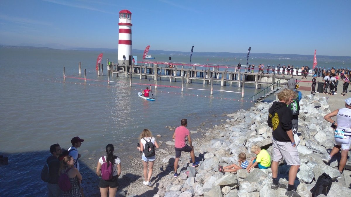Z nábrežnej promenády môžeme byť svedkami čulého vodného života. Győr ukazuje, že je to mesto riek, kde sú teraz dôležité vodné športy a kedysi dôležitá bola aj riečna nákladná doprava. Kráčajúc popri bývalých lodeniciach prichádzame k mostu Jedlik, postavenému v roku 2010, odkiaľ už vidíme zaujímavú vežu na brehu rieky. Deviatou zastávkou našej prechádzky by mohol byť maják, posledný bod medzi pevninou a nekonečnou riekou, ktorá prichádza do Győru zo Szigetközu ako 126-kilometrového bastardského ramena Dunaja – najmedzinárodnejšej rieky sveta . Cieľová veža špeciálneho tvaru bola postavená pre majstrovstvá sveta v kajaku v maratóne v Győri v roku 1999 , čo je v győrskom hovorovom jazyku „AUDI-Torony“má meno. Cieľová veža sa stala symbolom športového zápolenia. Zaujímavosťou je, že vonkajšie oblúky veže v odraze vody naďalej tvoria kanoe. Budova je súčasťou jedného z najúspešnejších športových zväzov v krajine, športového centra Graboplast Győri Vízisport SE. Győrčania sú na športové úspechy mesta veľmi hrdí. Tento športový klub je najúspešnejší v kajakárskom športe za rok 2020 v rýchlostnej kategórii dospelých, mládeže a detí. Pri pohľade na jej minulosť sa jej konkurenti môžu pochváliť početnými športovými úspechmi a piatimi zlatými olympijskými medailami.