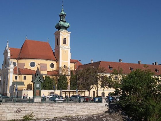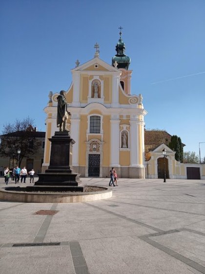 Keď prídeme na križovatku Baross út a Kazinczy utca , vidíme veže vpravo aj vľavo. Osobité kostoly barokovej architektúry nás lákajú oboma smermi. Urobme si teda odbočku! Smerom doprava na Kazinczyho ulicu prídeme na Széchenyiho námestie , najkrajšie námestie v historickom centre mesta , ktoré je hlavným námestím centra mesta a treťou zastávkou našej prechádzky. Oplatí sa prejsť do stredu námestia a rozhliadnuť sa odtiaľ.