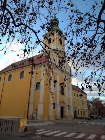Pri vstupe do kostola vidíme bohato zdobený interiér bývalého jezuitského, dnes benediktínskeho kostola. Tento kostol zachoval okázalú nádheru barokového cirkevného umenia tým najšetrnejším spôsobom a po prebiehajúcej obnove aj tým najkrajším spôsobom.