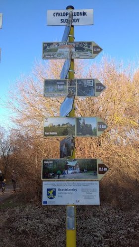 Kittsee – Berg – Vyhliadková veža Berg. Cca 22-30 km pozor !! V zime môžu byť na trase na vežu zimné uzávery.