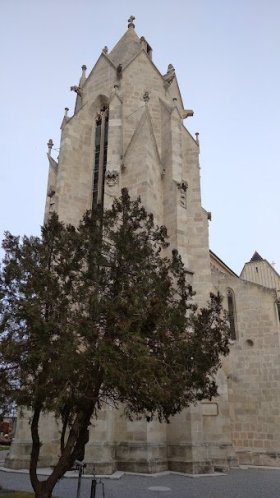 Podľa nášho pôvodného plánu však z Bécsikapu tér budeme pokračovať pešo na sever. Naša cesta pokračuje smerom k veži Káptalandomb , kde sa pred nami impozantne týčia dve veže.