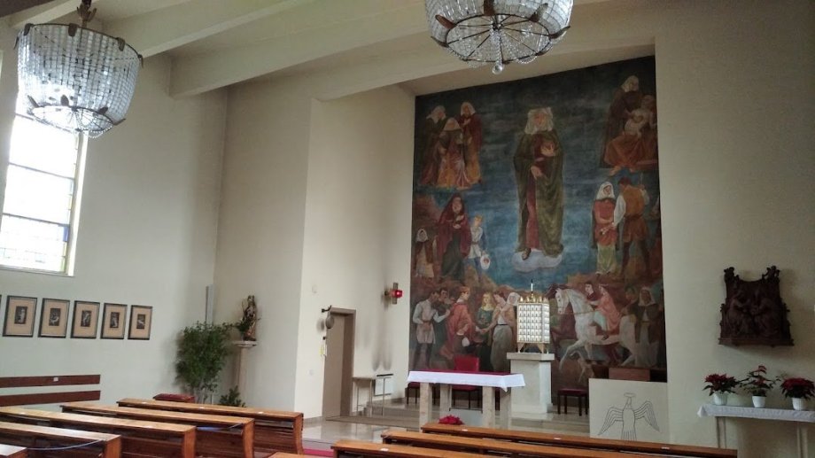 Najbohatšie zdobenou časťou interiéru kostola je oltár v severnej lodi s obrazom Krvi plačúcej Márie v strede, ktorý je symbolom barokového Győru. Ráno 17. marca 1697 Panna Mária, zobrazená na ikone győrskej katedrály, ronila krvavé slzy. Vreckovku, ktorou sa nasávali slzy, čo o tom svedčí, uchovávajú v kostole. Z kostola vychádzame pri bráne severnej lode a pokračujeme vľavo.