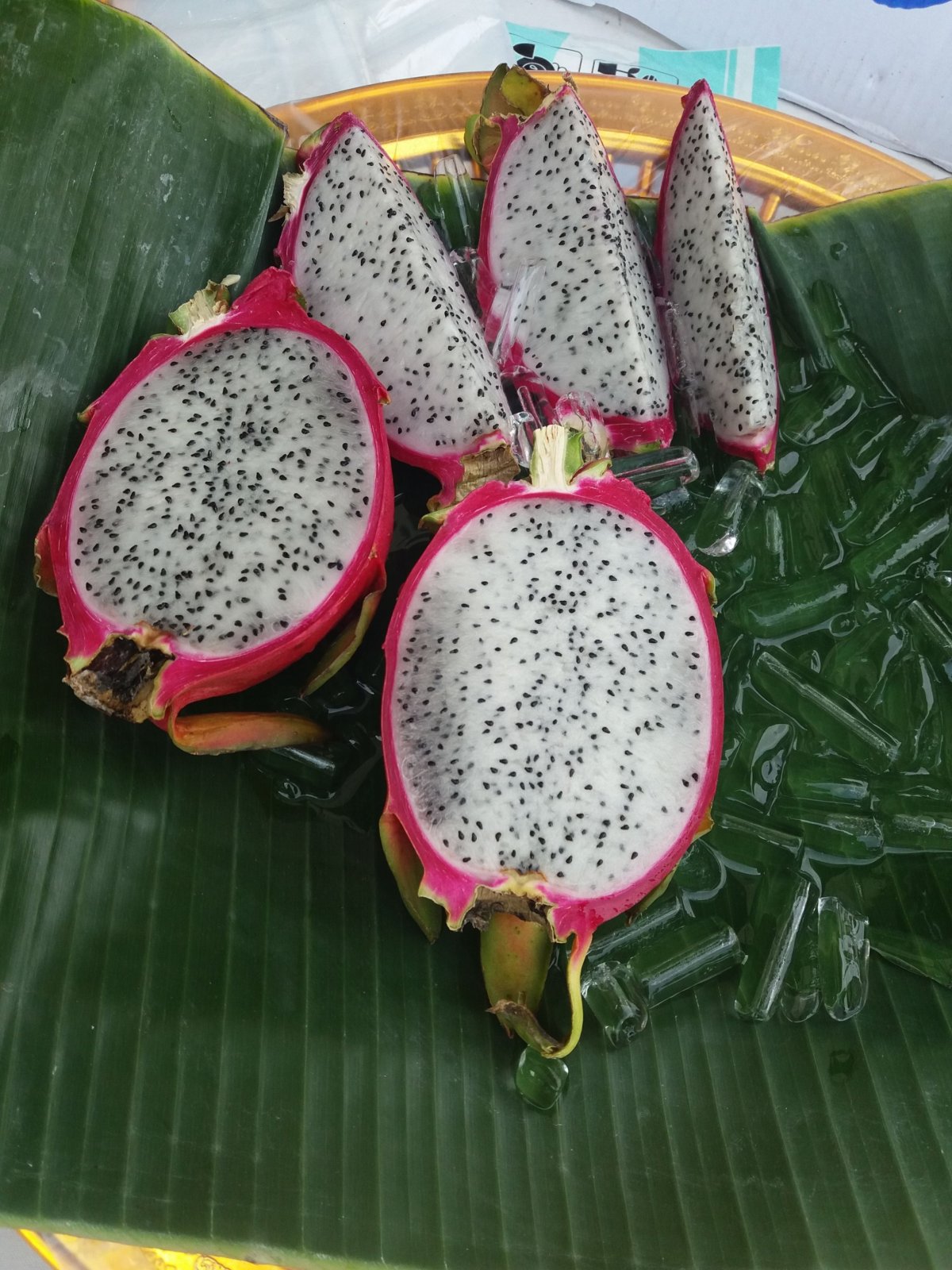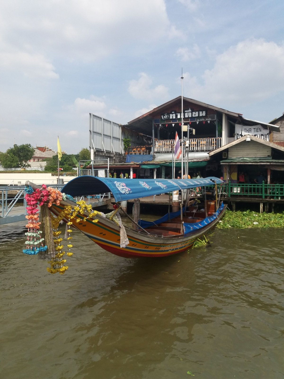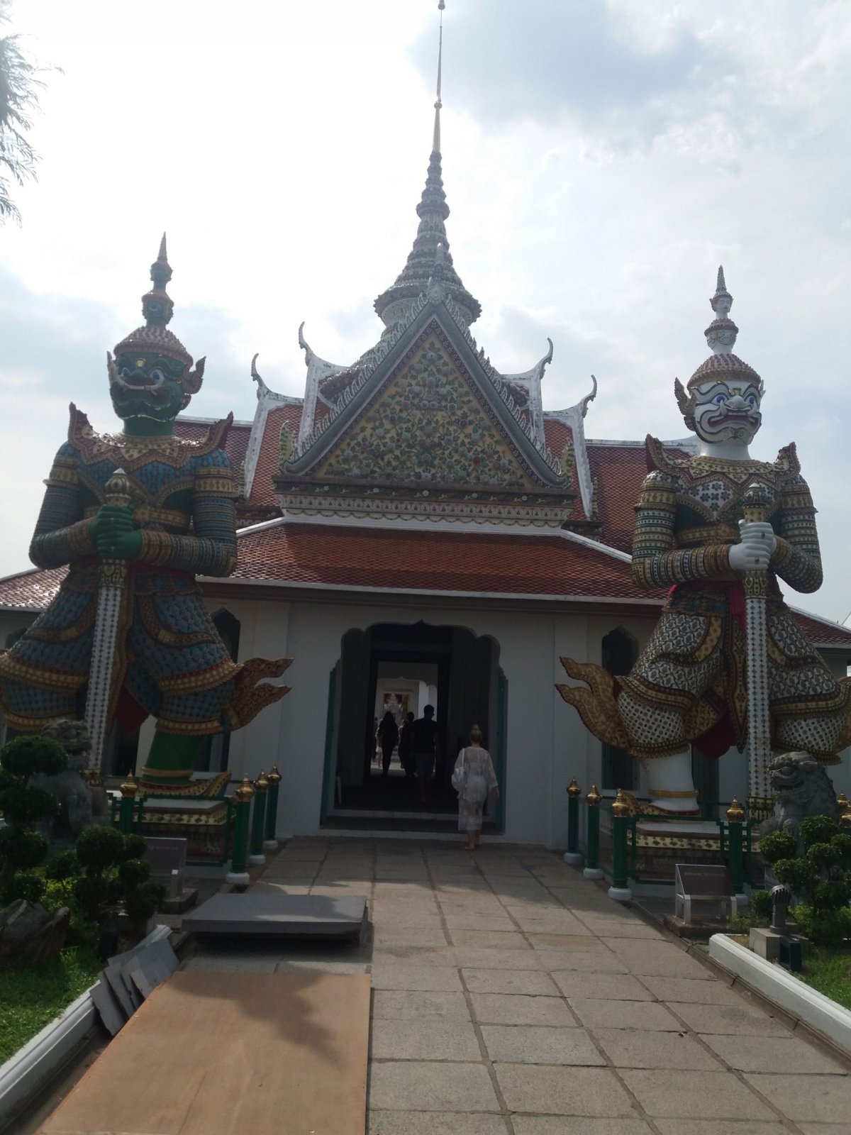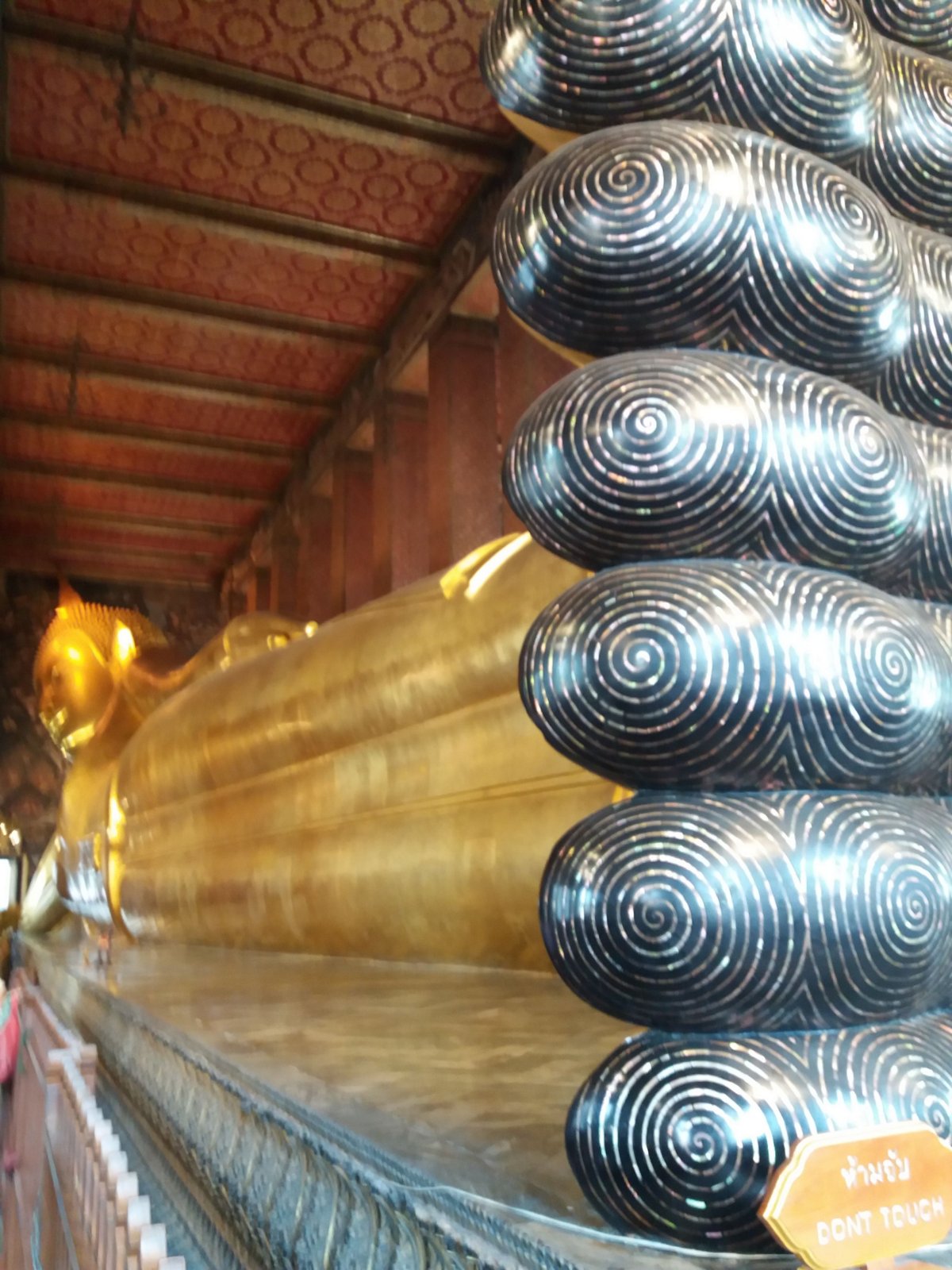 Z královského paláce jsme pokračovali k Wat Pho, obrovskému ležícímu budhovi. Tam jsme ochutnali první ovoce, stala se z toho láska k dračímu ovoci, neskutečně nám chutnalo. Nakonec jsme jeli loďkou přes řeku k Wat Arun. Cesta stála myslím 4 BTH. Težko jsme ji hledali, prochází se zastřešeným "trhem". Tady jsme si koupili další dobrotu a to šťávu z granátového jablka. Bomba!