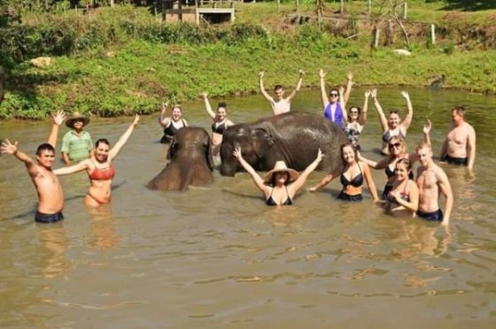 Další den jsme měli naplánovaný výlet za slony a v ranních hodinách nás vyzvedli před hotelem a jelo se. V této rezervaci se na slonech nejezdí, jen se s nimi stráví půl dne, krmíte je, drbete je a koupete se s nimi. Krásný zážitek a výborné jídlo, které bylo součástí výletu.