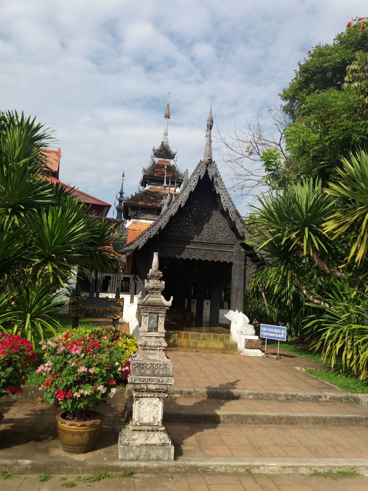 Další den v Bangkoku jsme se chystali zpět na letiště kde jsme cestovali směr Chiang Mai, letenka nás vyšla asi na 250 Kč na osobu. Cestou k letišti jsme navštívili Golden Mountain - Zlatou horu, která je naprosto magická. Hlavně prvních několik schodů, které jsou oázou klidu.