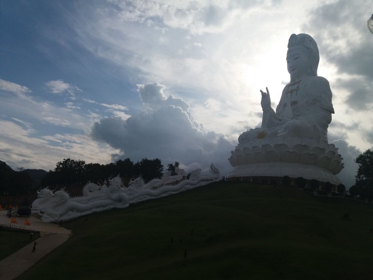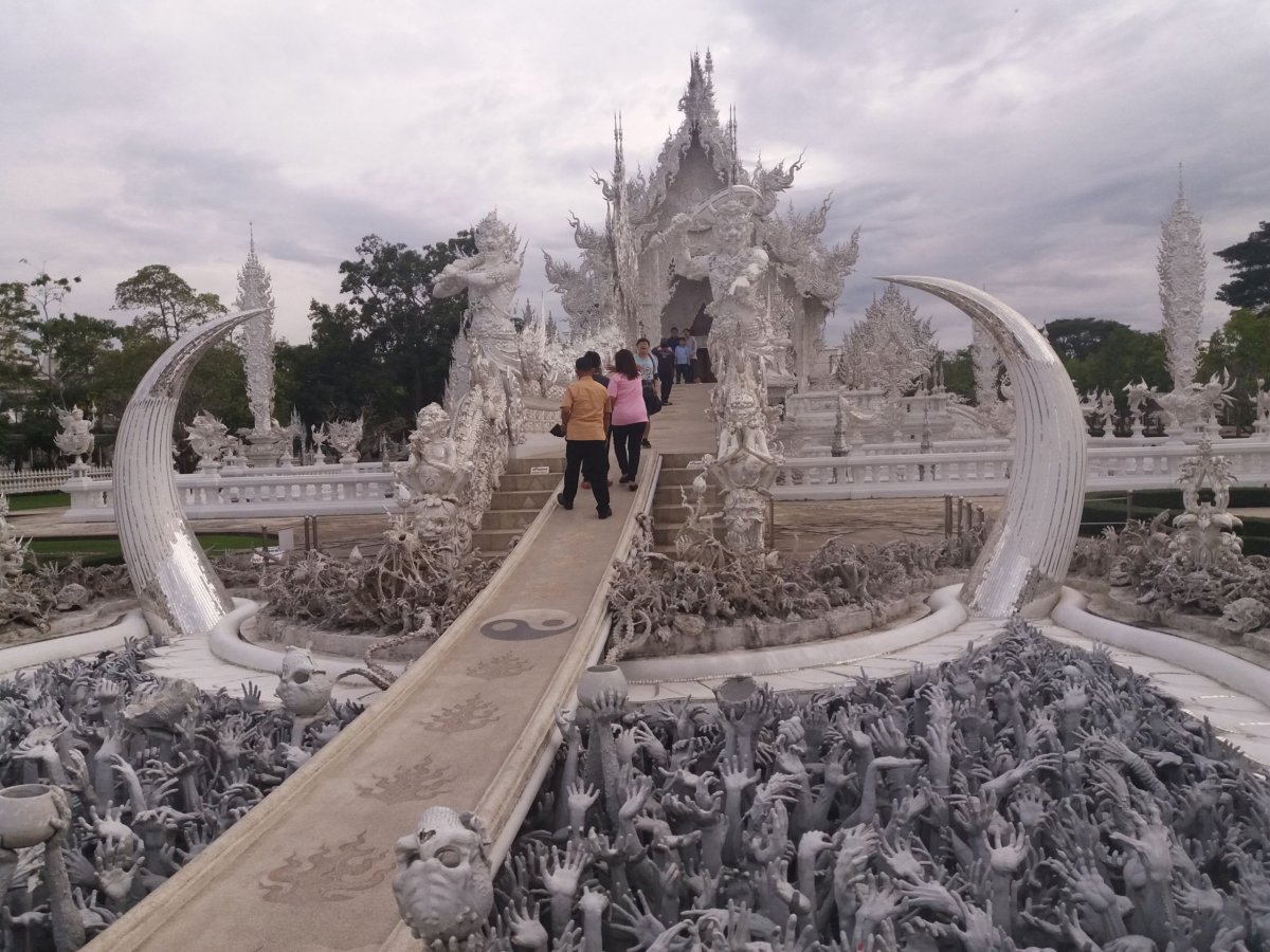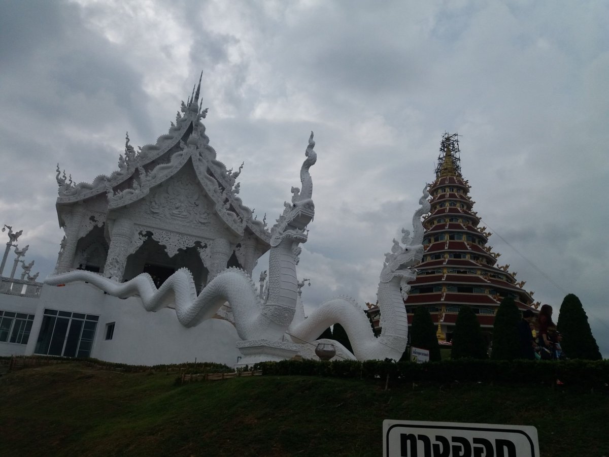Chaing Rai je nádherná, měli jsme ubytování na 3 dny pro dvě osoby i se snídaní za 800 Kč. Ubytko bylo Tourist Inn, mají vlastní pekárnu, obyčejné pokojíky, ale pro baťůžkáře s cílem "jen" přespat ideální a určitě bychom se sem vrátili. Udělali jsme si výlet do džugnle, k Blue Temple - nádherný modrý chrám. Dále White Temple - bílý, trošku morbidní chrám, který je ale opravdu překrásný a za návštěvu určitě stojí i zlaté záchody hned vedle :). Nejvíc nás, ale uchvátil bílý obrovský budha, to byla nádhera. V jeho blízkosti je ještě další bílý chrám a čínská pagoda, vše se jmenuje Wat Huay Pla Kang. Nechal jsme se odvézt taxíkem, ale udělali jsme chybu, že na nás taxík nečekal. Nemohli jsme sehnat odvoz zpět do města.