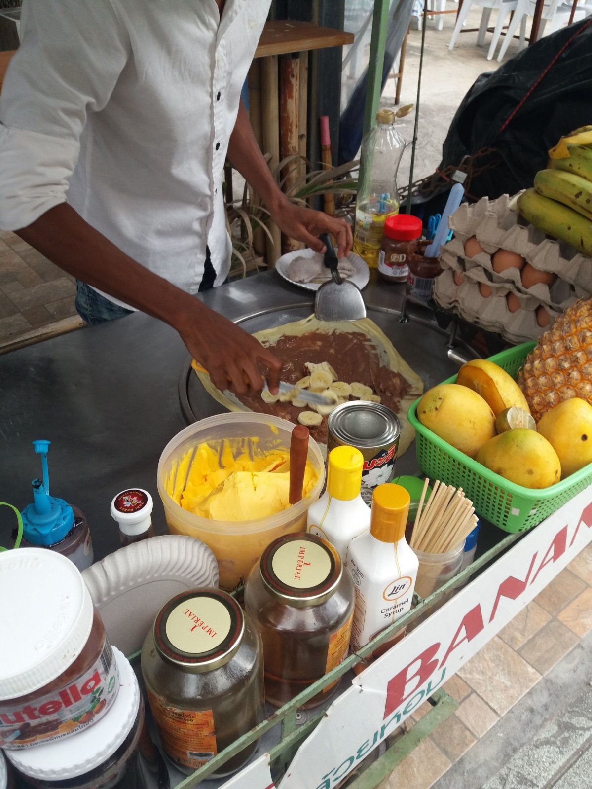 Bangkok pro nás byl opravdu "jiný svět". Na letišti jsme se převlékli, vyměnili peníze a hup na linku Sky train z letiště až do Phaya Thai (tady by se češi mohli učit), tady nás políbilo šílené teplo. K hotelu jsme to měli asi 4 km, ale šli jsme pěšky a užívali si všechno co jsme viděli. Jelikož pondělky jsou v Thajsku vyhlášeny za "čisté", tedy bez stánků (uklízí po víkendu), byli jsme na první večeři v restauraci, kde nám moc chutnalo... a to byl teprve začátek kulinářské nirvány v Thajsku. Hlavně se nebojte jíst v každém stánku, který vidíte, ochutnávejte všechno co chcete, je to podle mě povinnost! Ovšem vodu jsme kupovali pouze balenou i na čištění zubů a nepotkaly nás žádné střevní problémy.